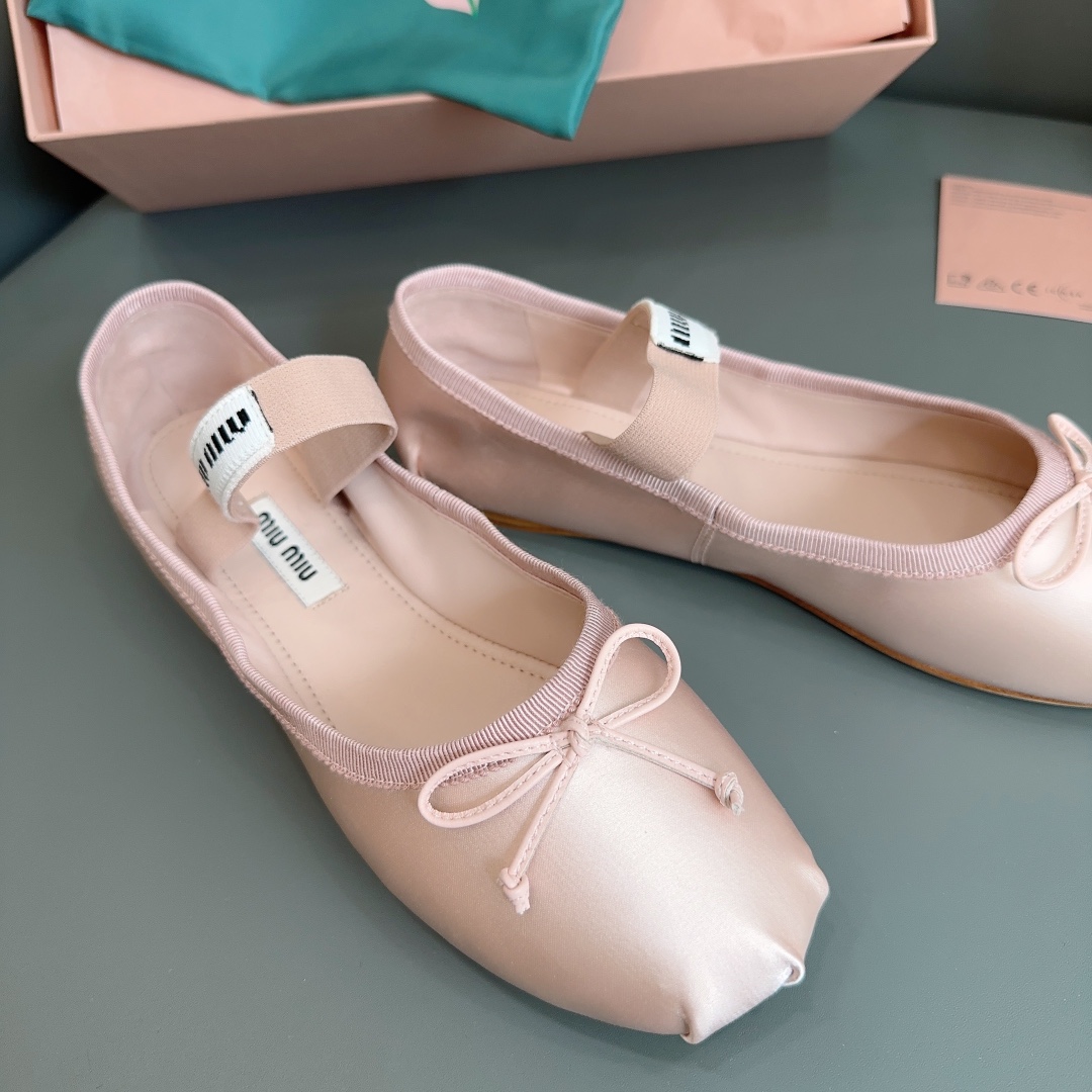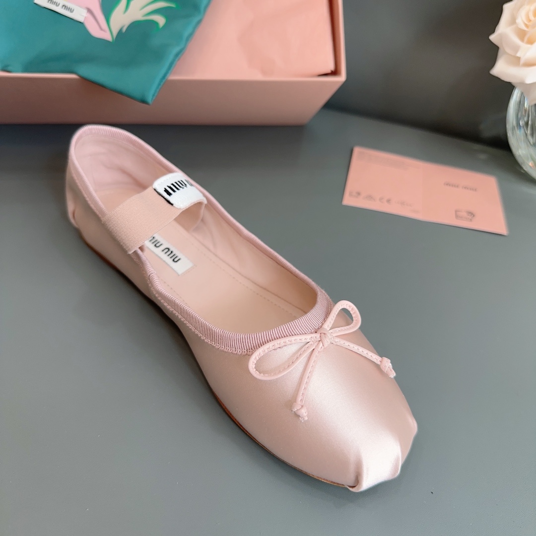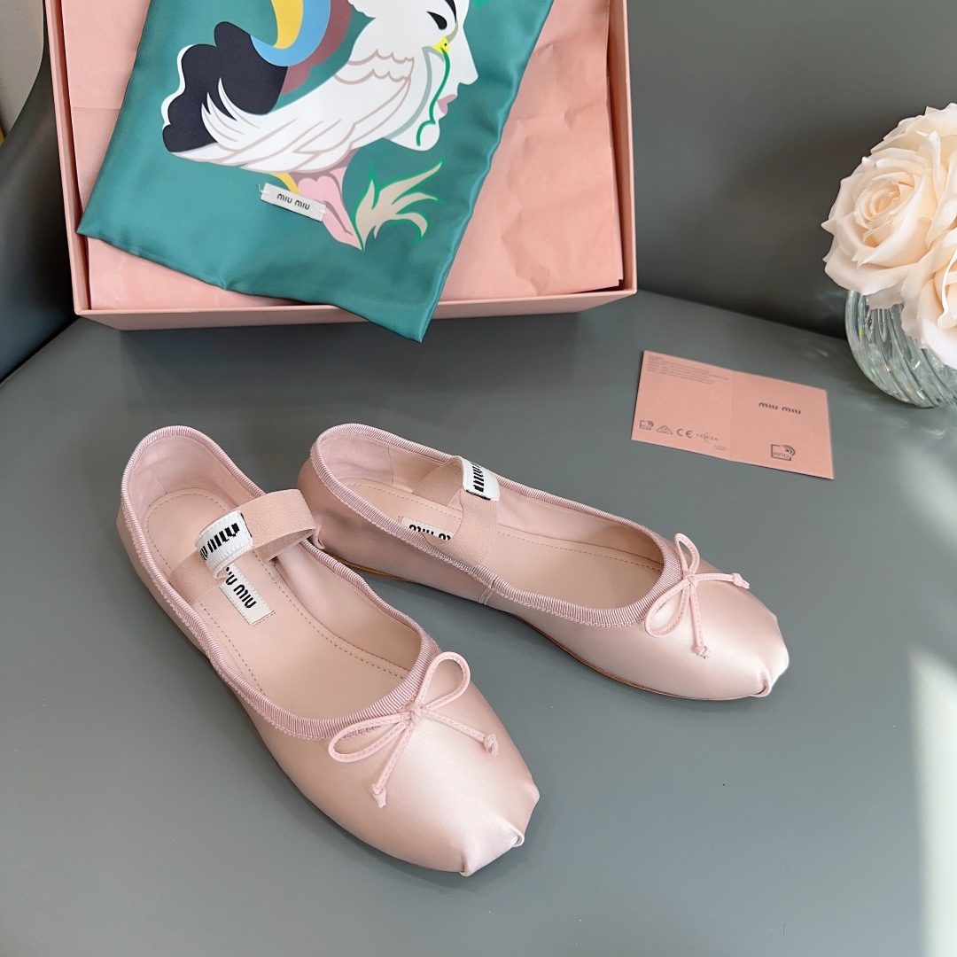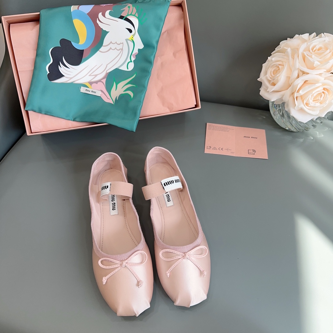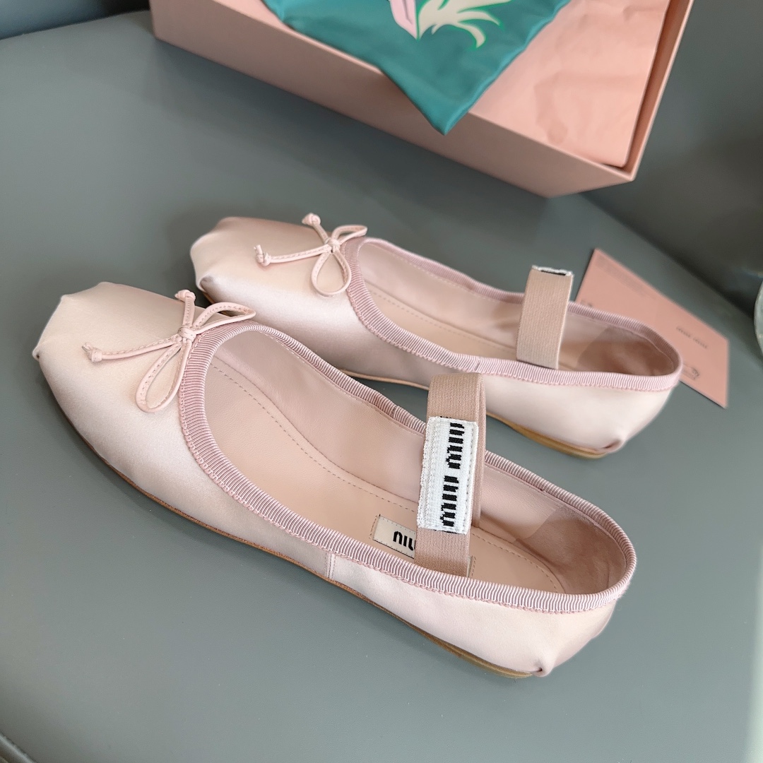 MiuMiu|MM谬谬经典玛丽珍款芭蕾舞鞋绑带鞋,简单的一条松紧带凸显了整双鞋子玛丽珍的本色,蝴蝶结 又增添了淑女风范,面料进口真丝布,内里/垫脚超软进口绵羊皮,意大利进口本色透染真皮大底,4⃣️色:黑色 可可棕 兰花粉 珍珠白,码数:35-36-36.5-37-37.5-38-39码,