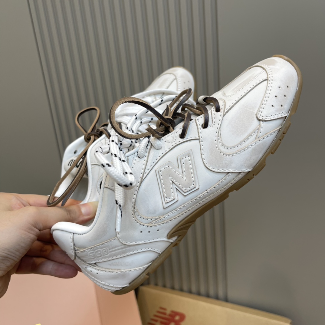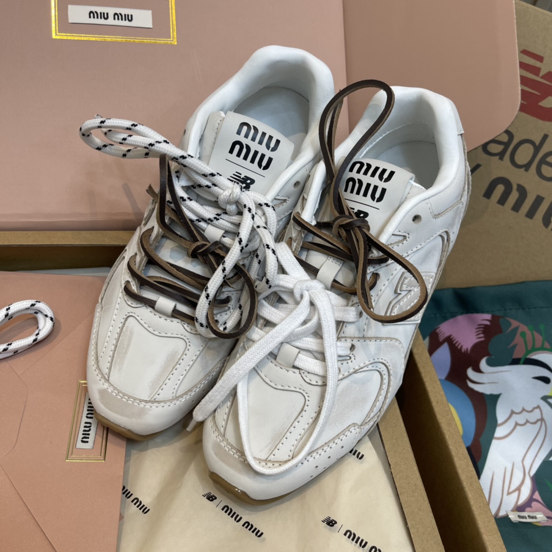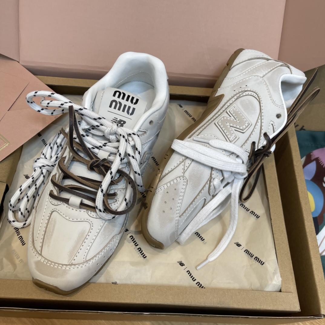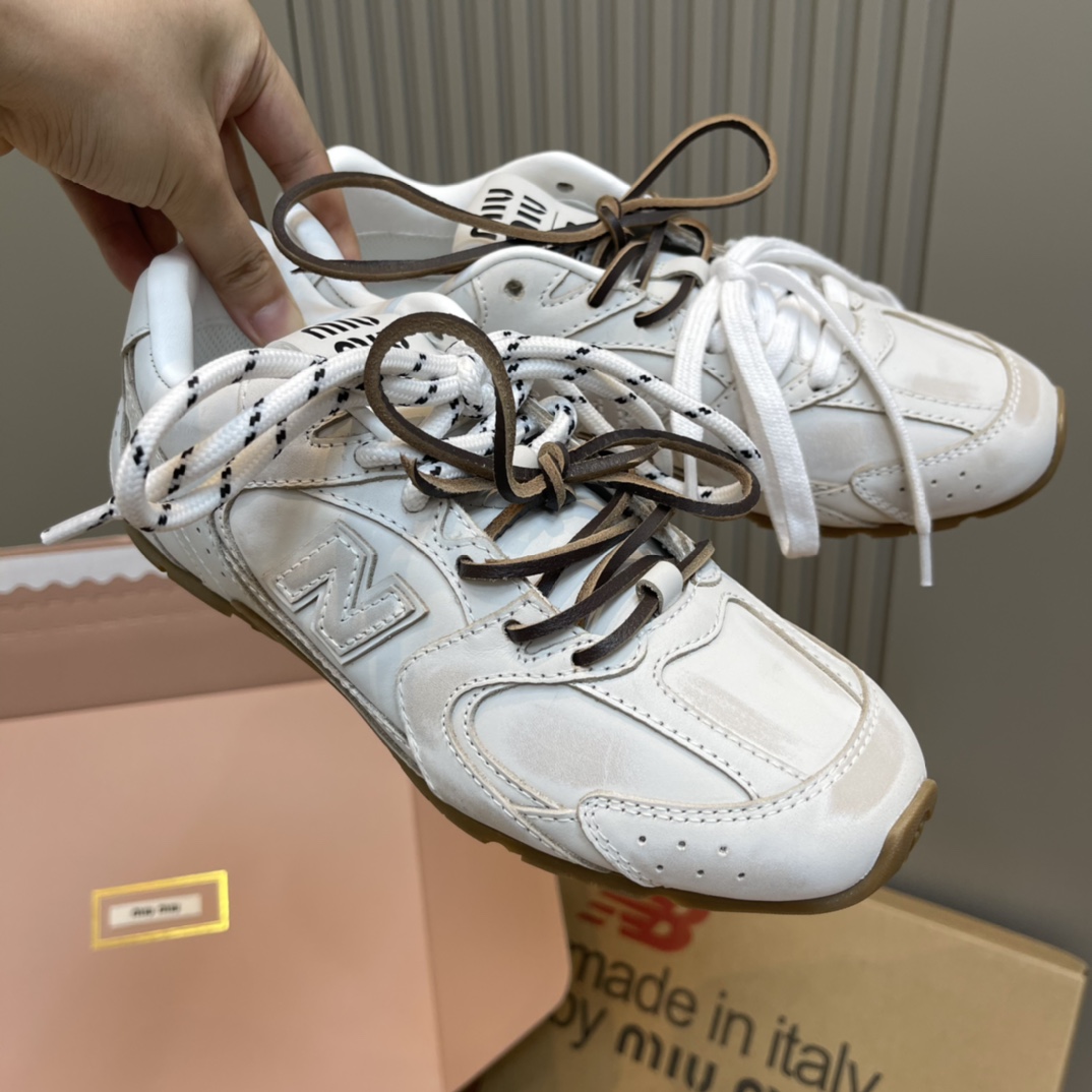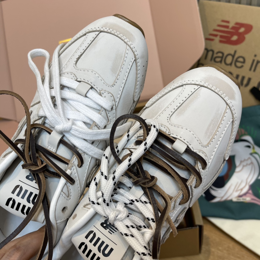New Balance X Miu Miu 530 SL 牛皮擦色皮革运动鞋 Miu Miu携手New Balance打造特别款运动鞋。Miu Miu革新鞋履构型,塑就轻盈质感,亦玩味对比色彩与纹理,呈现别致鞋带设计。 徽标装饰平添标志性元素。 鞋面配擦色皮革嵌饰 织物衬里 鞋舌和内底饰丝网印刷徽标 扁平鞋带开合 橡胶鞋底,几何鞋底花纹 可拆卸织物包覆内底 size:35~40