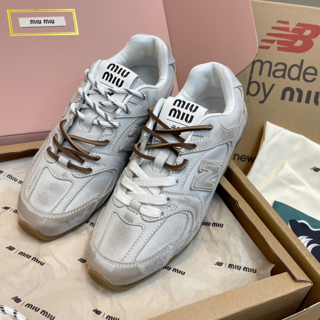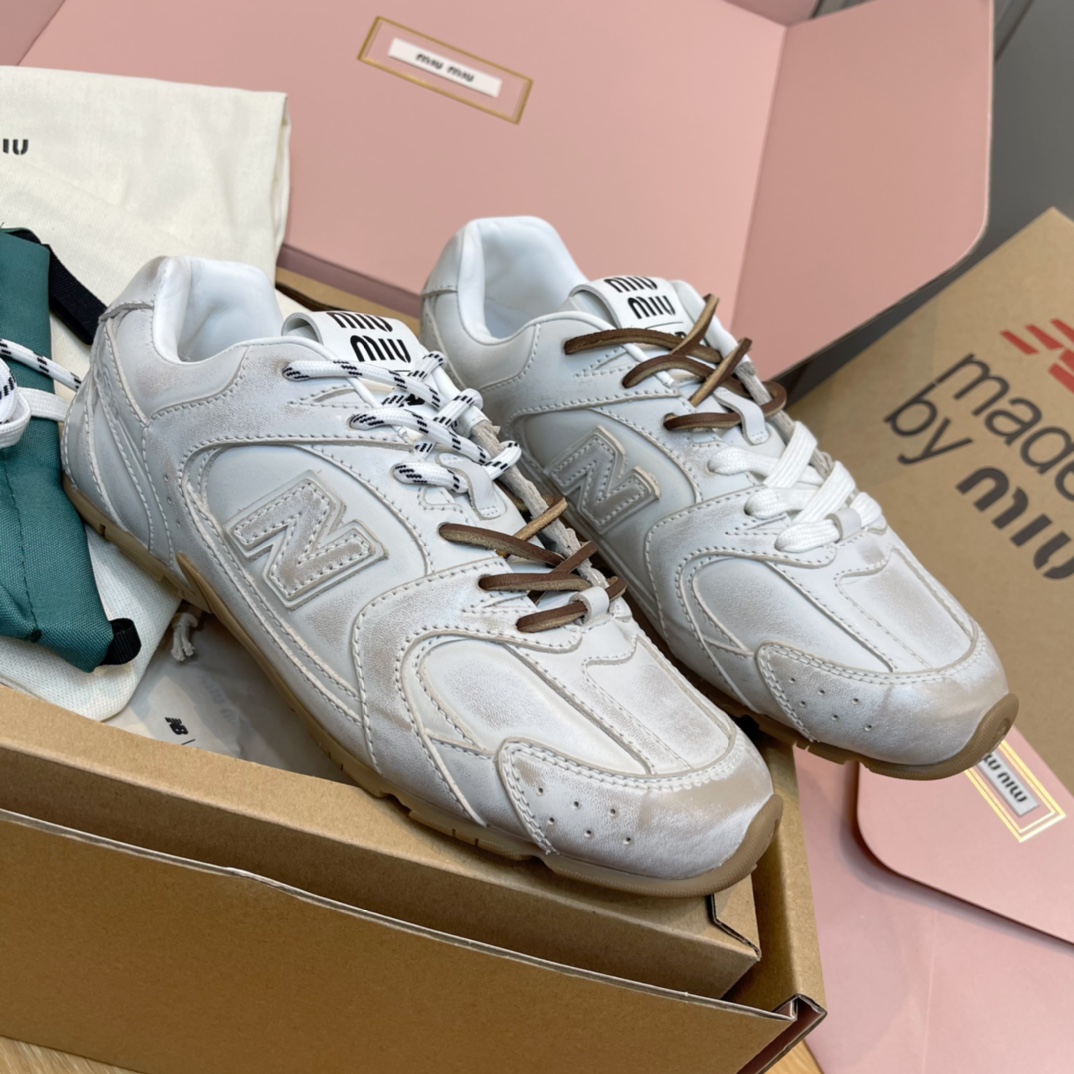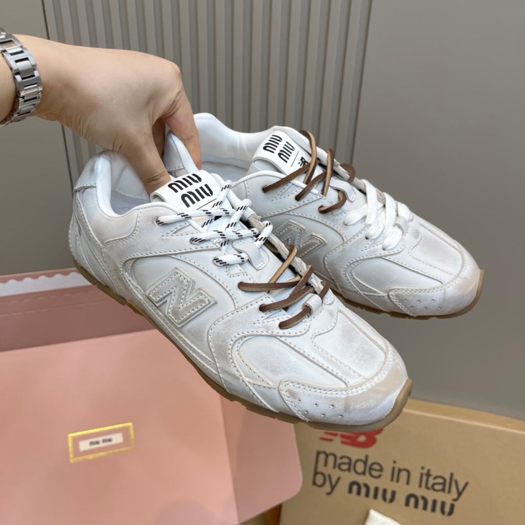 New Balance X Miu Miu 530 SL 牛皮擦色皮革运动鞋 Miu Miu携手New Balance打造特别款运动鞋。Miu Miu革新鞋履构型,塑就轻盈质感,亦玩味对比色彩与纹理,呈现别致鞋带设计。 徽标装饰平添标志性元素。 鞋面配擦色皮革嵌饰 织物衬里 鞋舌和内底饰丝网印刷徽标 扁平鞋带开合 橡胶鞋底,几何鞋底花纹 可拆卸织物包覆内底 size:35~40
