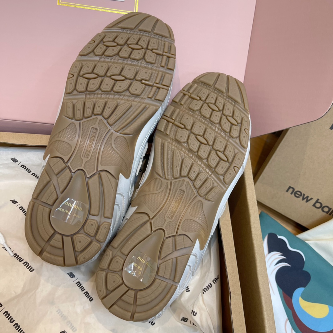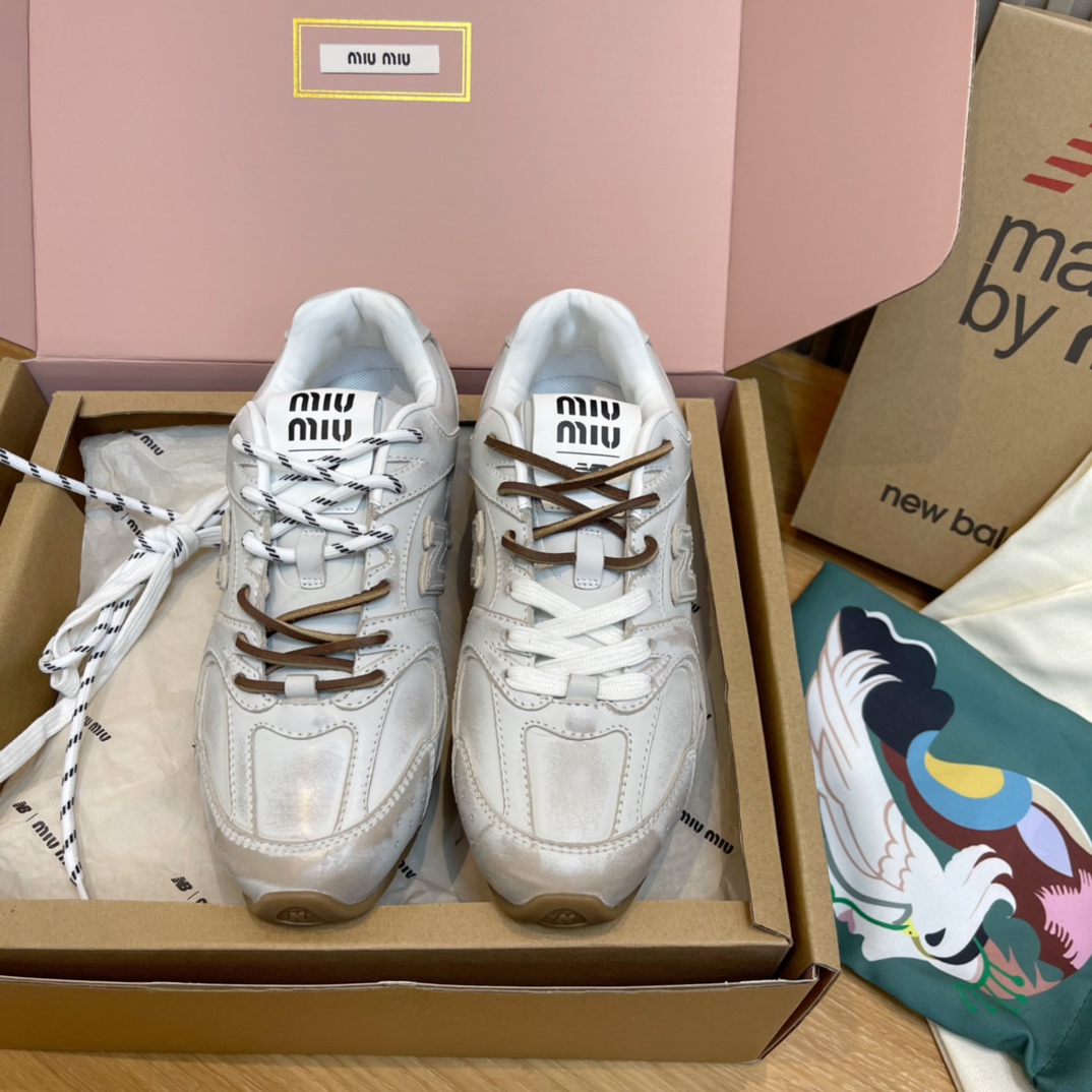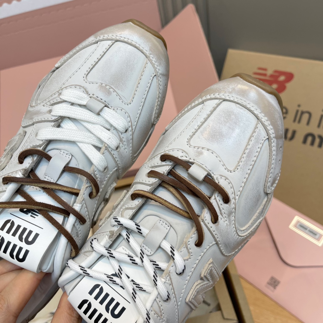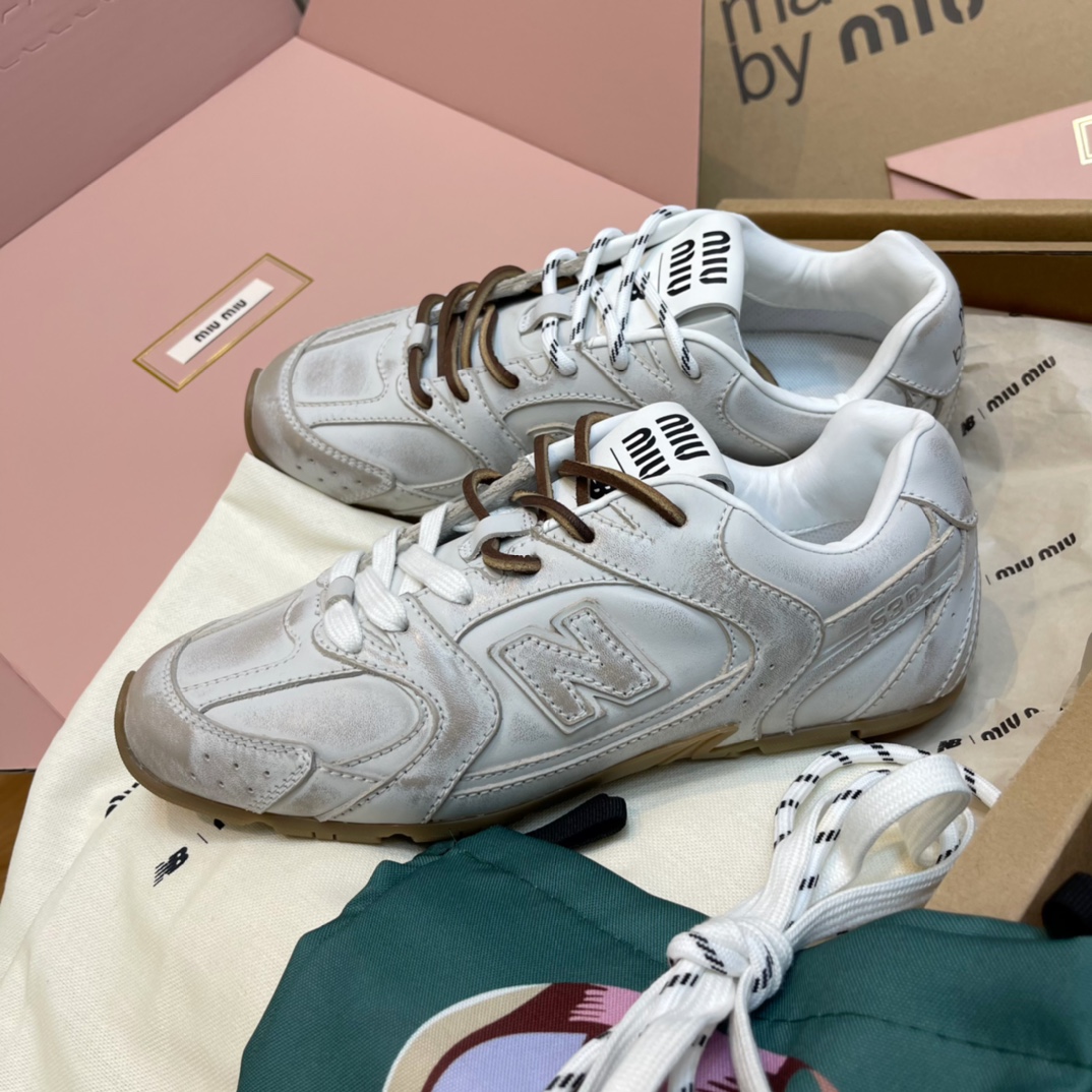 New Balance X Miu Miu 530 SL 牛皮擦色皮革运动鞋 Miu Miu携手New Balance打造特别款运动鞋。Miu Miu革新鞋履构型,塑就轻盈质感,亦玩味对比色彩与纹理,呈现别致鞋带设计。 徽标装饰平添标志性元素。 鞋面配擦色皮革嵌饰 织物衬里 鞋舌和内底饰丝网印刷徽标 扁平鞋带开合 橡胶鞋底,几何鞋底花纹 可拆卸织物包覆内底 size:35~40