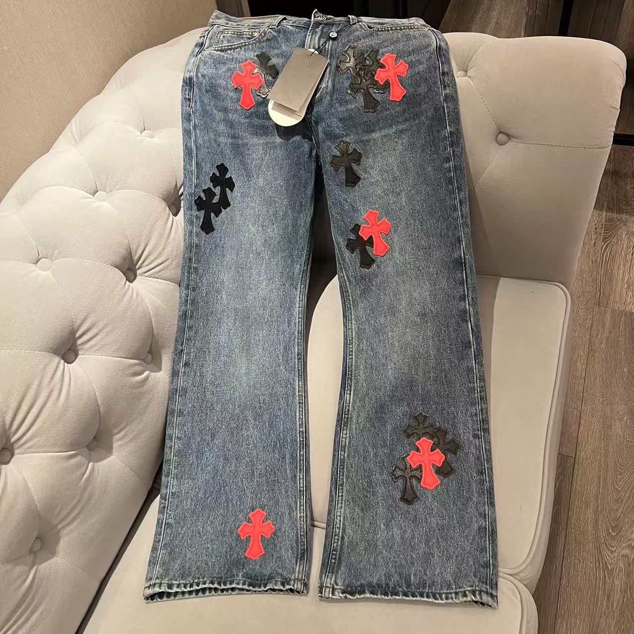 P 【仓库现货】克罗心高端定制牛仔裤 定制原版开模 头层牛皮贴皮绣 数码直喷印花 高端版本 原版包装发货