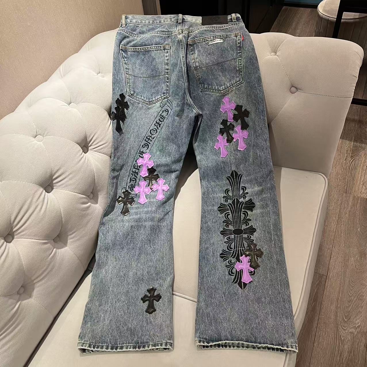【仓库现货】克罗心高端定制牛仔裤 定制原版开模 头层牛皮贴皮绣 数码直喷印花 高端版本 原版包装发货
