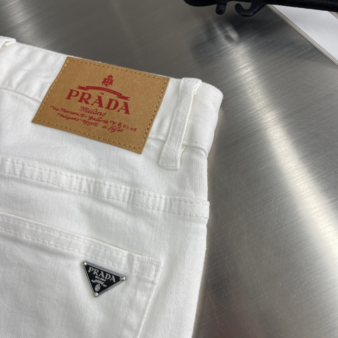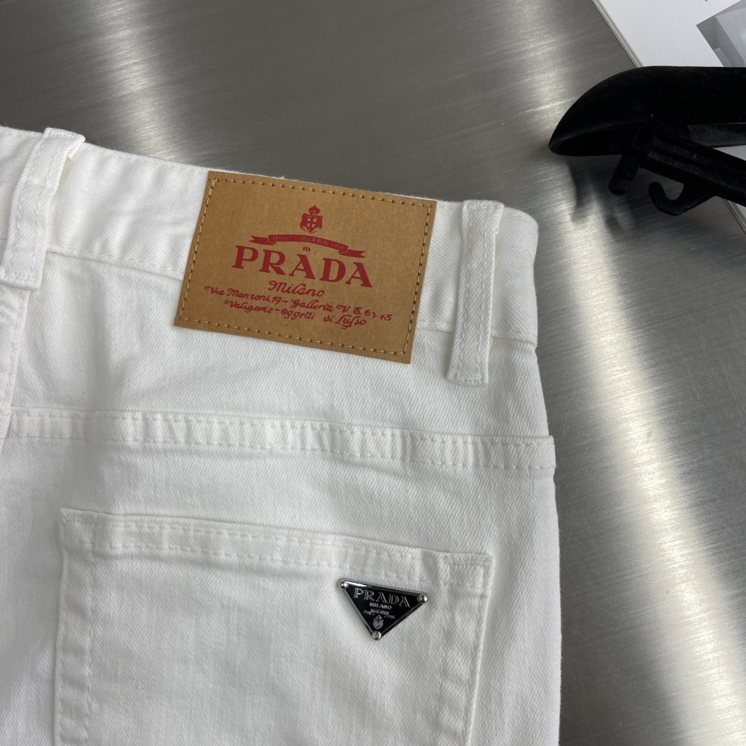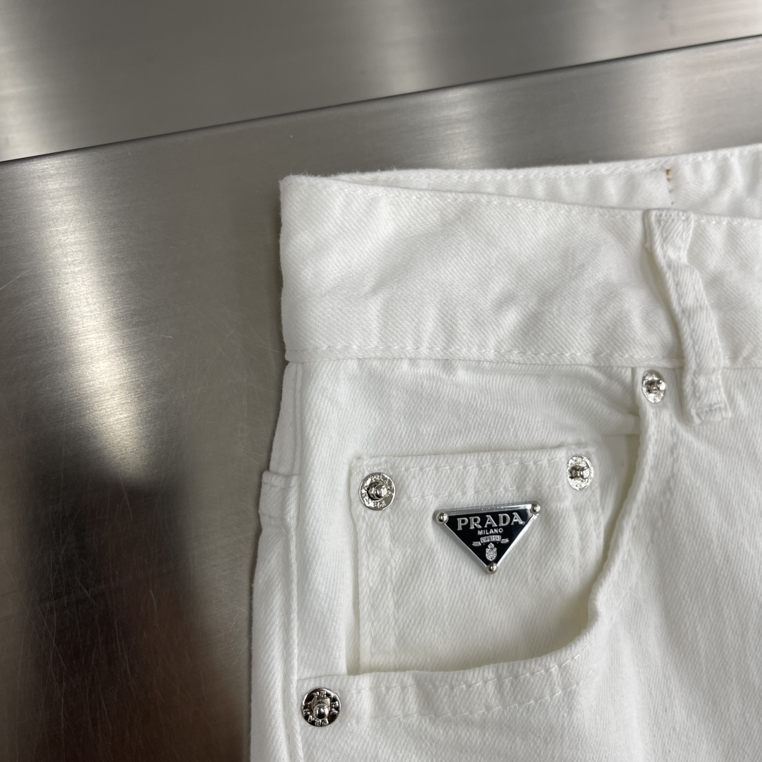 PRAD简约白色牛仔裤全