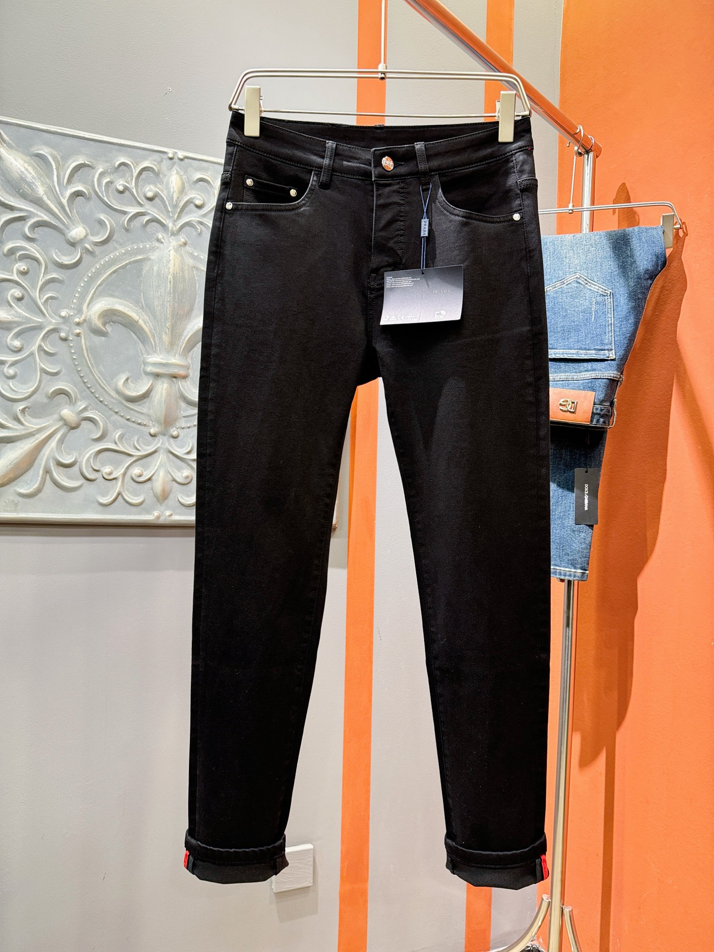 PRADA 普拉达 原单牛仔裤 新款原版牛仔裤 原版重工打造,品牌经典LOGO设计,三标齐全!原版五金辅料。专柜定制牛仔面料,完全对版专柜,欢迎专柜试穿后再购买,好货不怕比。码数:29-38(无37)