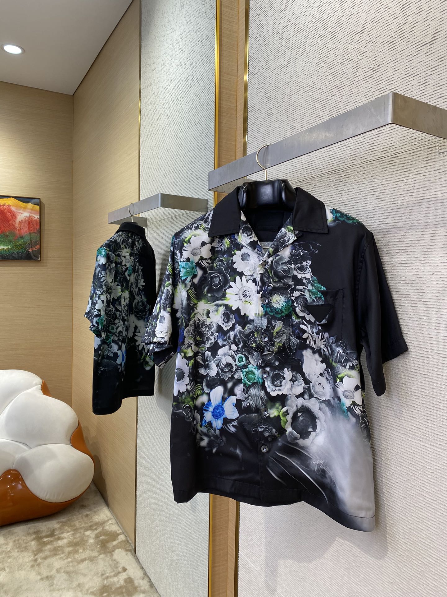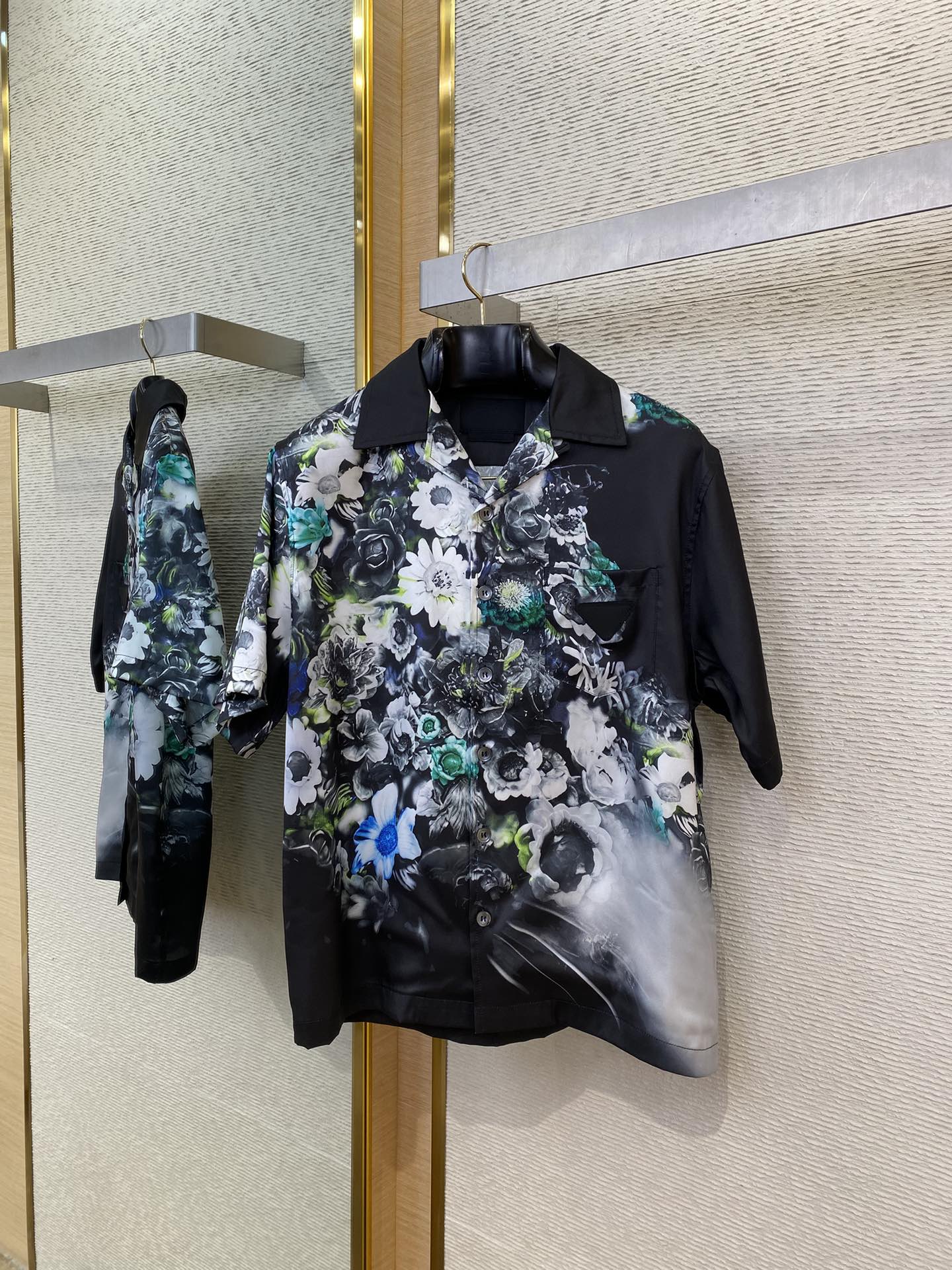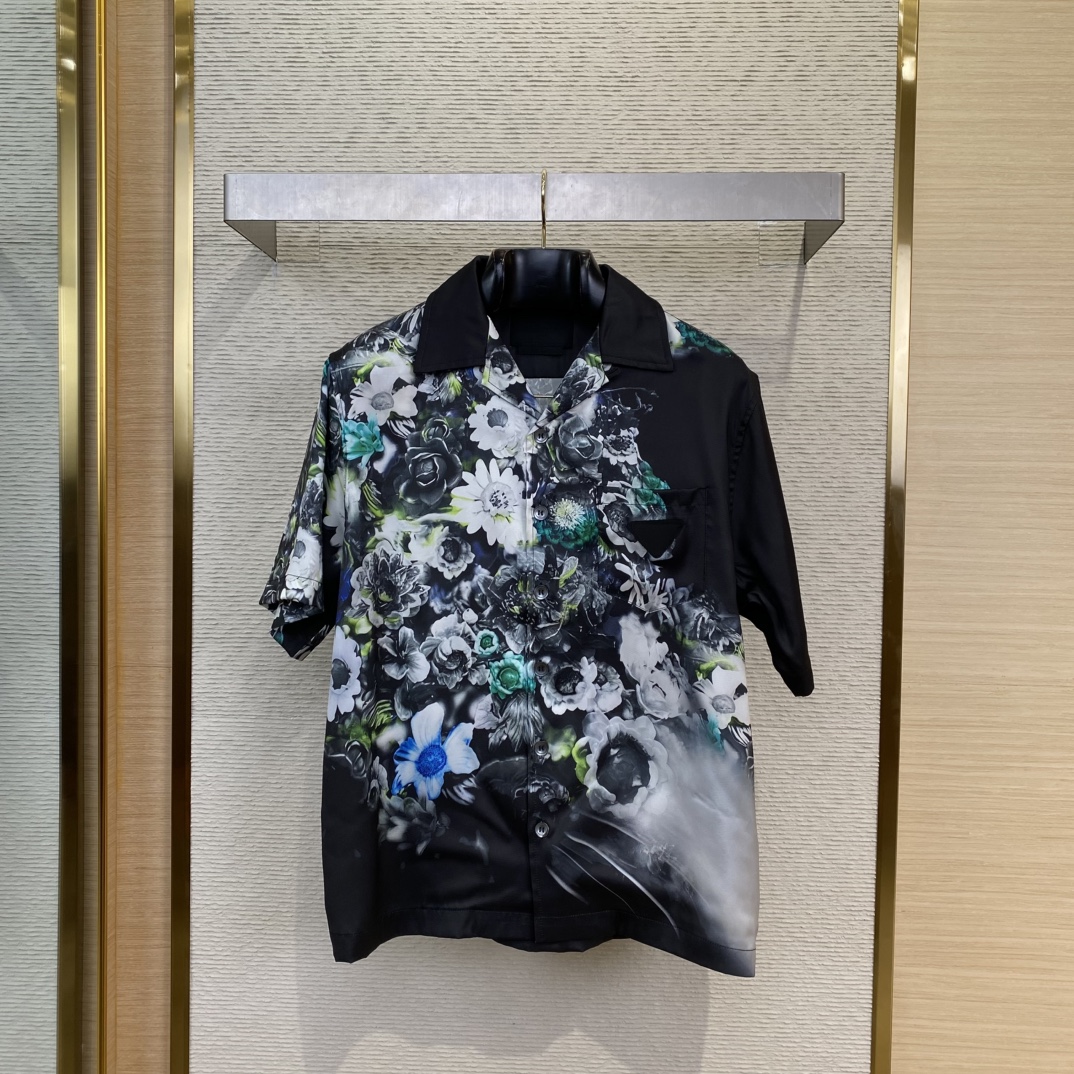 PRADA普拉达花卉桑蚕丝短袖衬衫