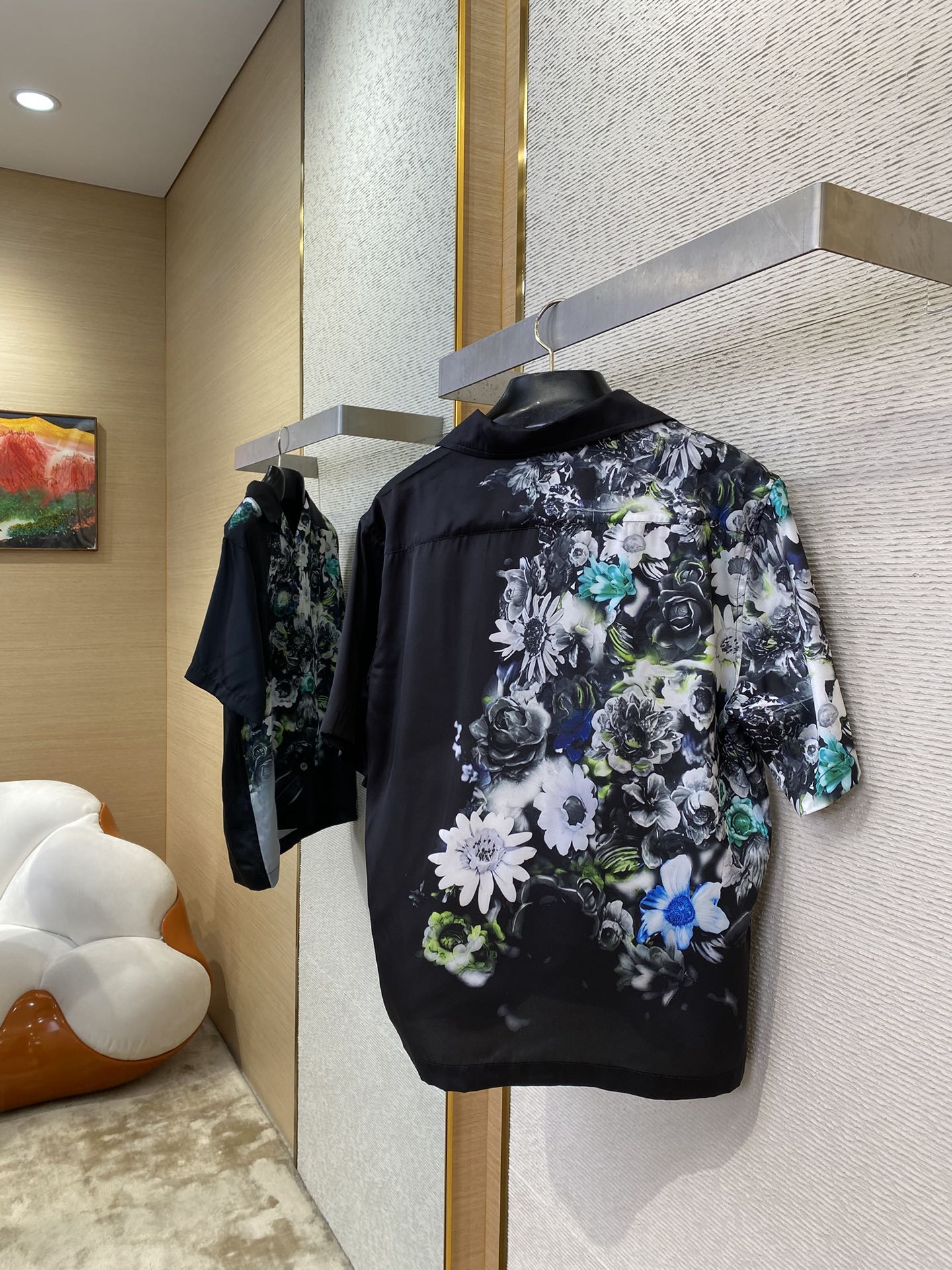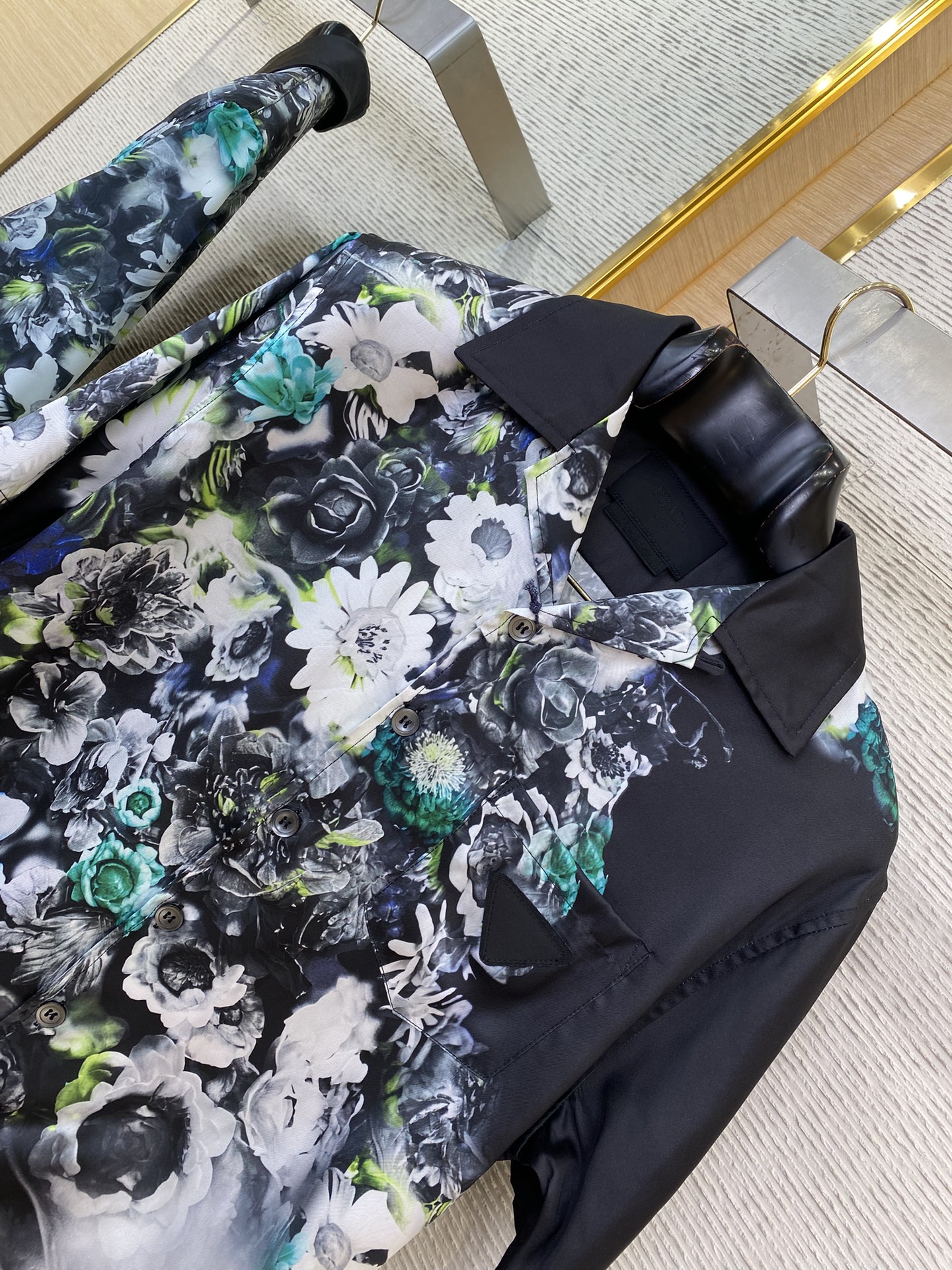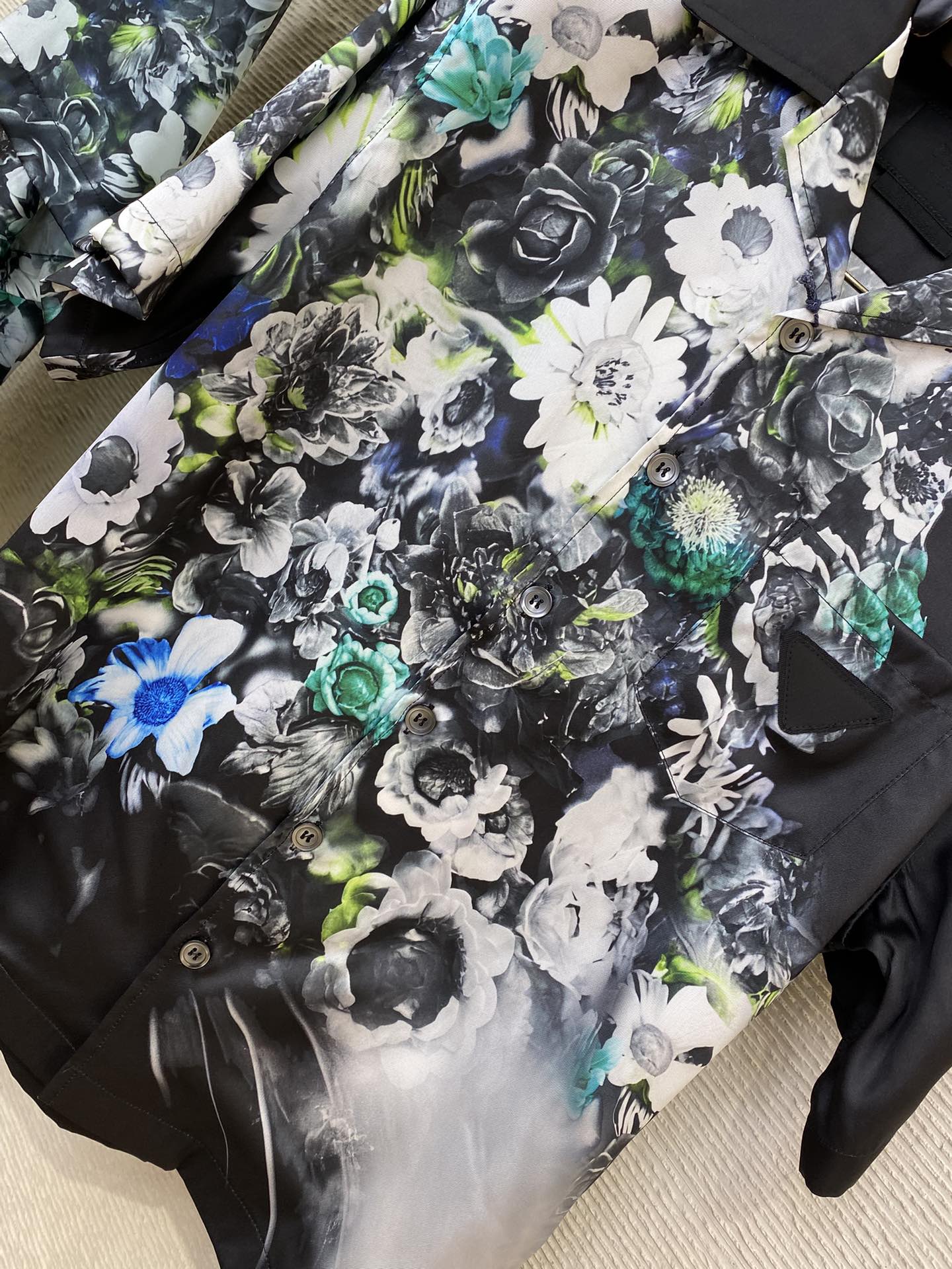 PRADA普拉达花卉桑蚕丝短袖衬衫