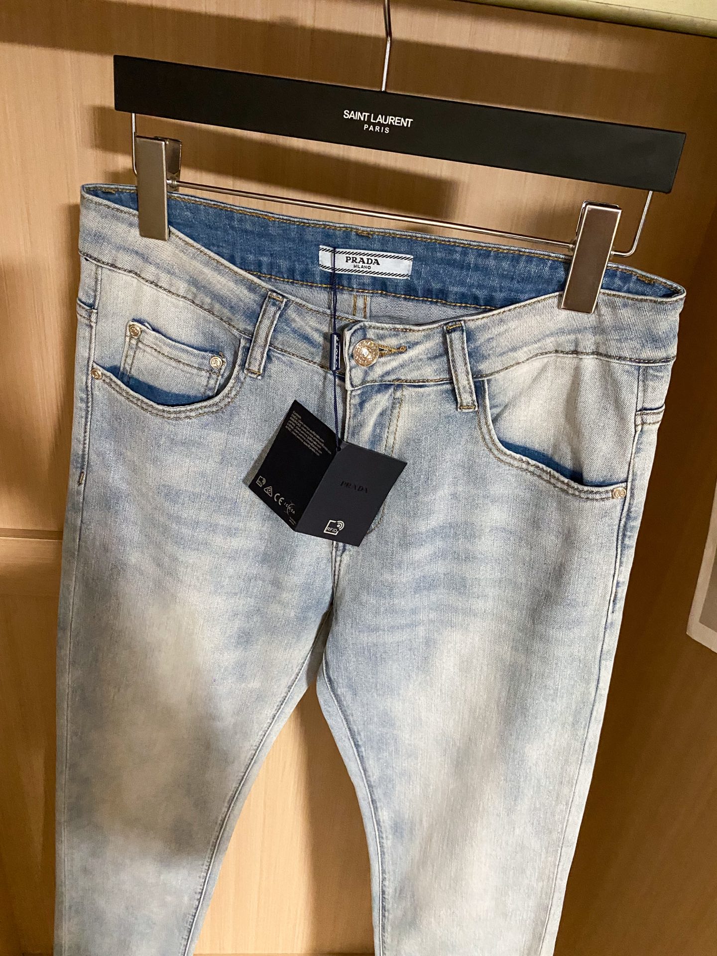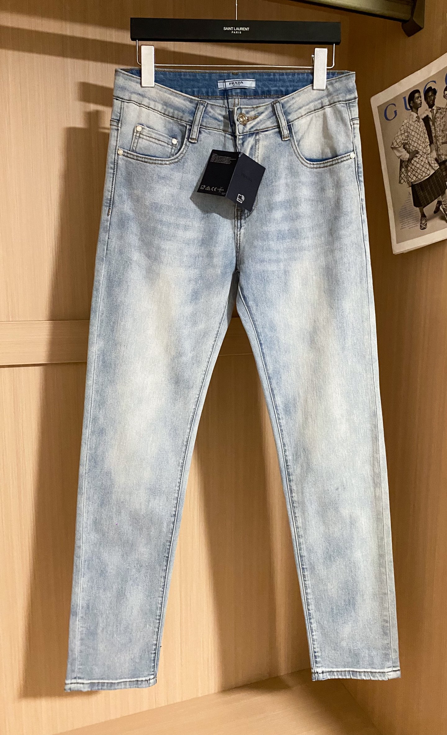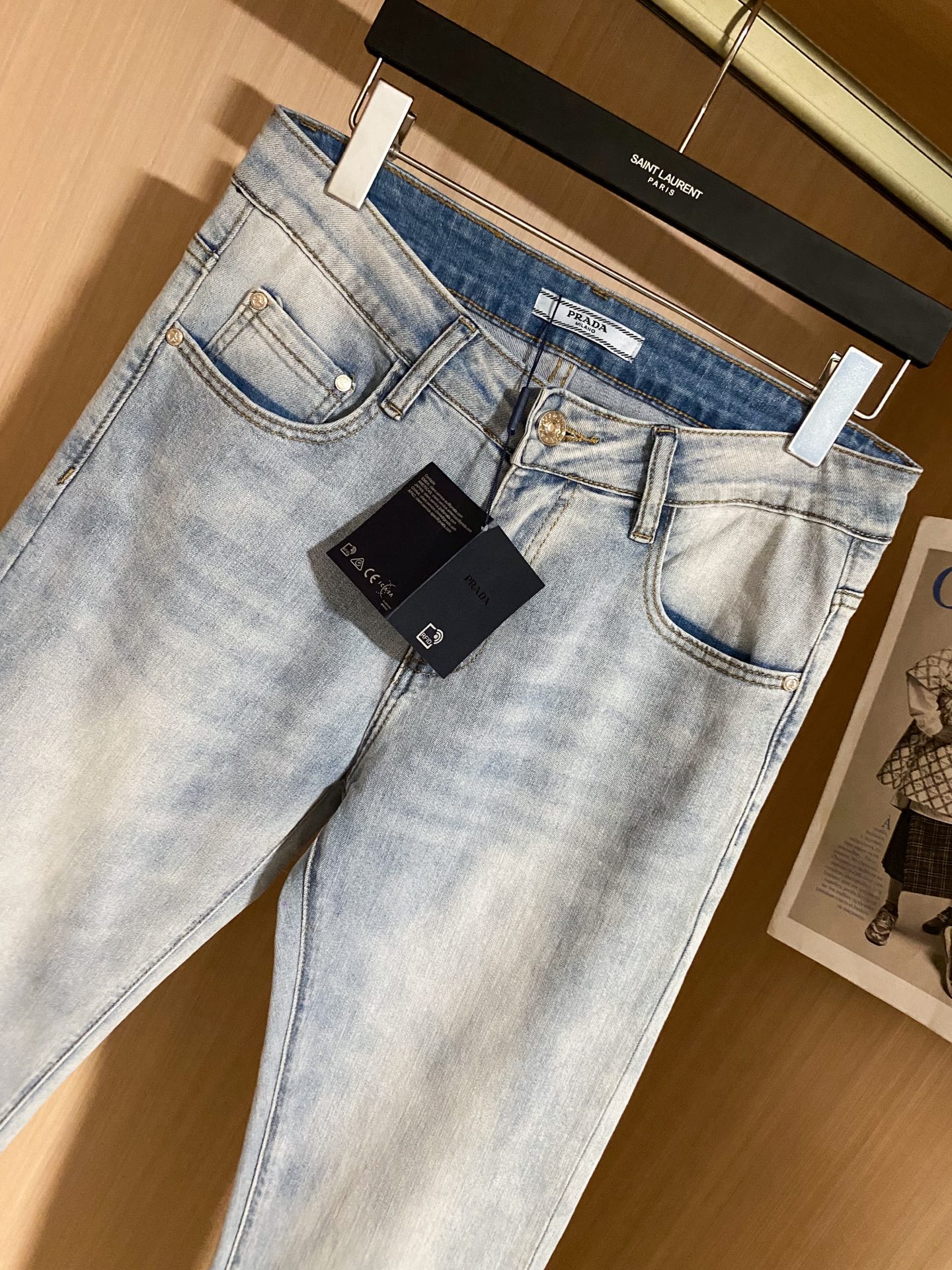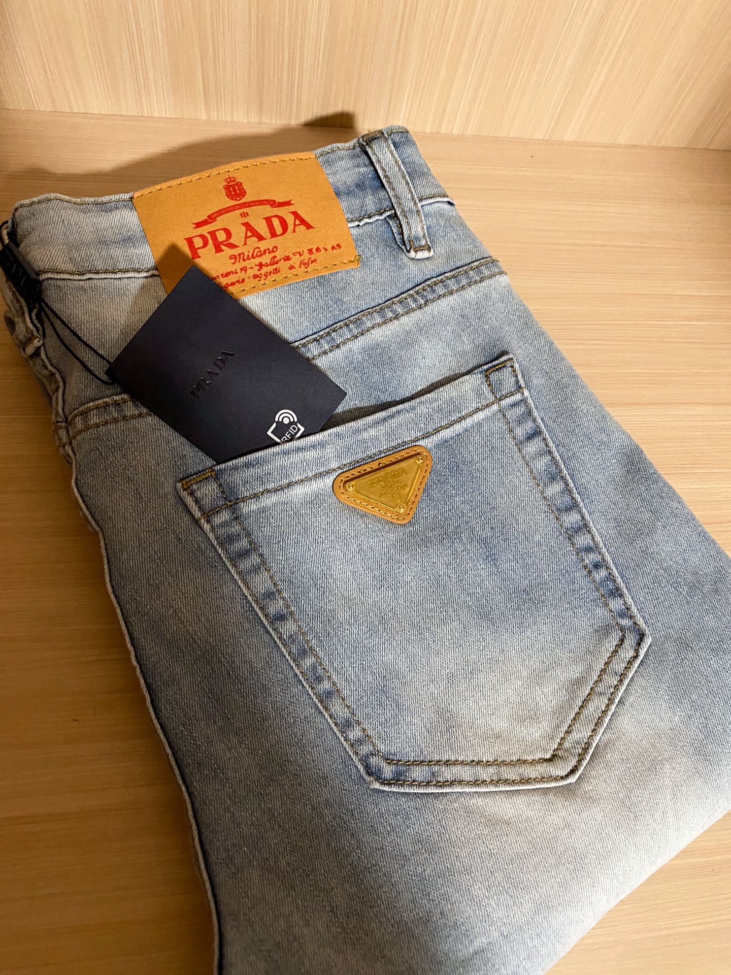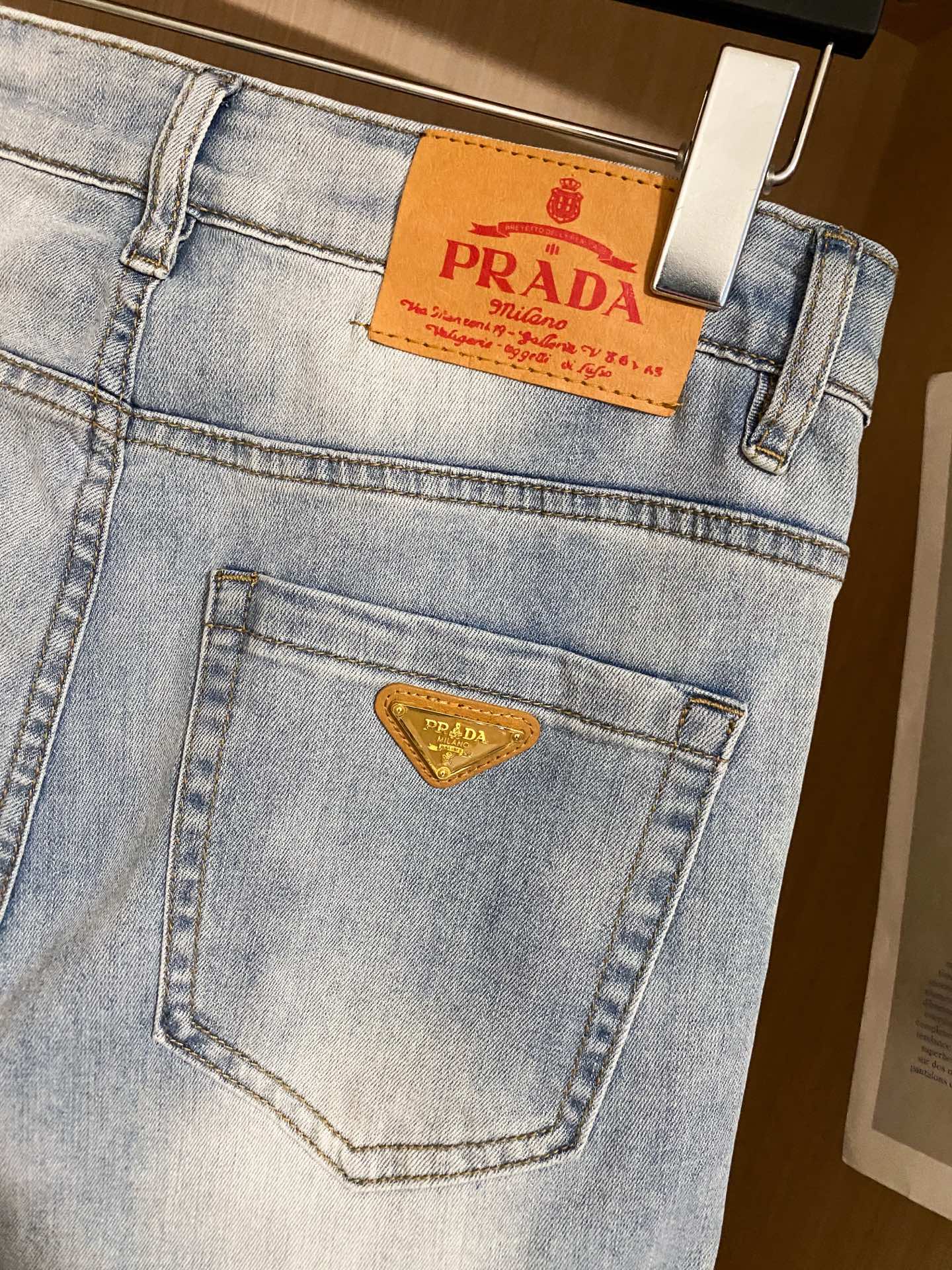 PRADA 25早春新款休闲牛仔裤系列 开模定制五金配件,直筒裤脚、面料舒适柔软亲肤,挺括有型、不易起皱,口袋经典三角标logo装饰、百搭时尚,上身版型好! 码数:28-38( ️37)
