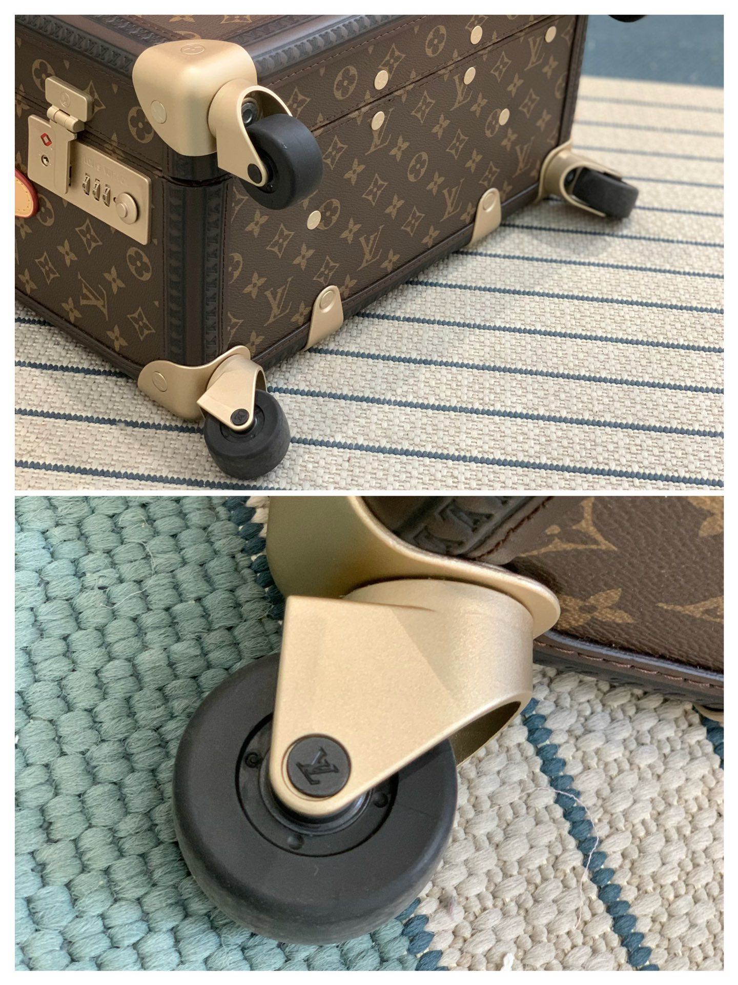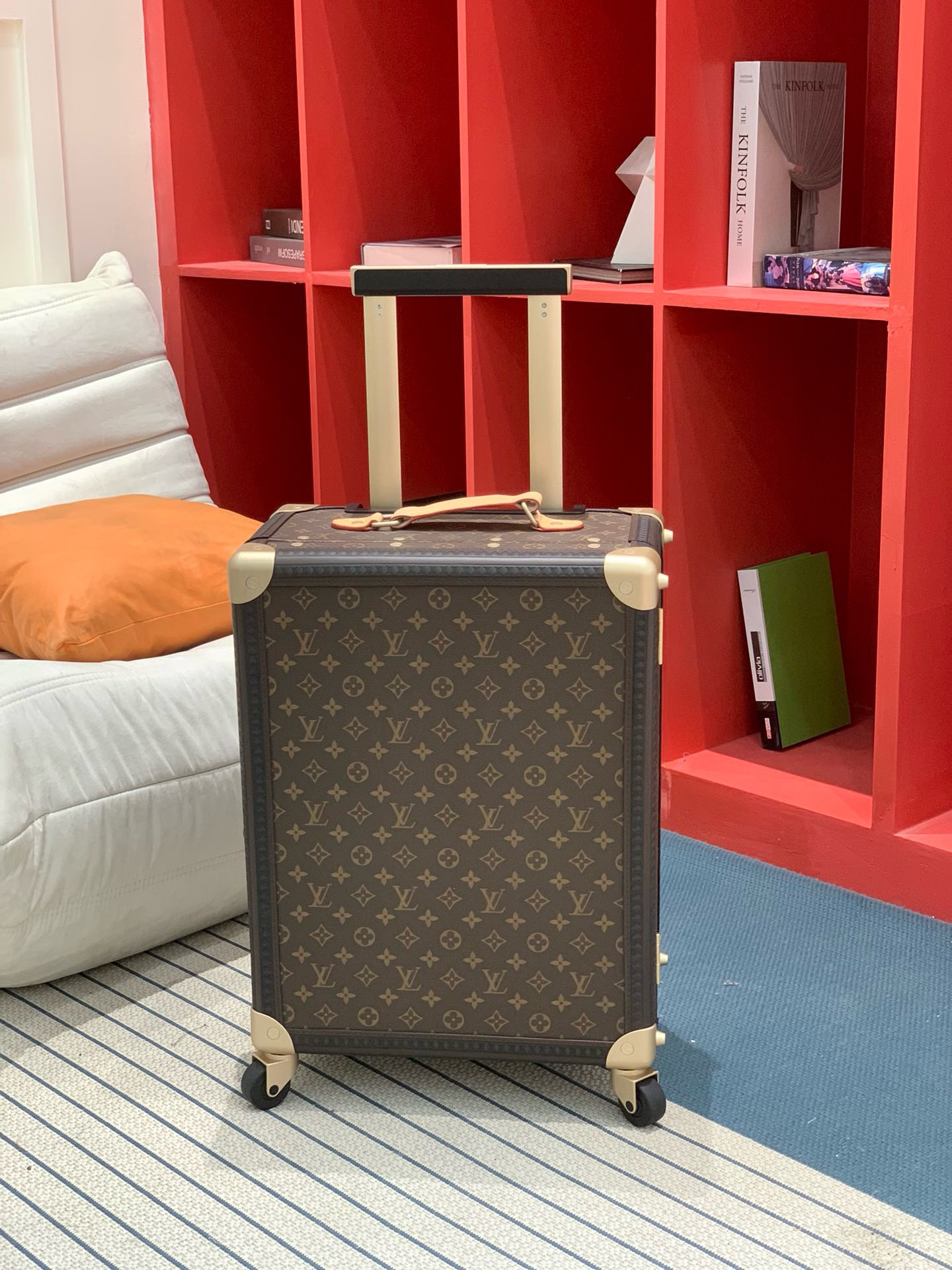 Rolling Trunk拉杆箱取材 Monogram 帆布和皮革,以加固包角、 木条和铆钉彰显的传统硬箱元素。密码锁带来稳妥保护,主 隔层设有拉链袋和可拆卸隔断。 39x 55×21厘米 (长度 x高x宽) Monogram 涂层帆布 牛皮革饰边 锦纶内衬 铝制金属件 纤细拉杆系统 滑轮设计 一体式 TSA 密码锁 平整主隔层 优化储物空间 主隔层配有弹力饰带和皮革细节 拉链隔层 可拆卸隔断配有拉链袋 硬箱盖 手柄:双手柄 图中的信息可能存在技术失准、色差、尺码误差或因产品改良