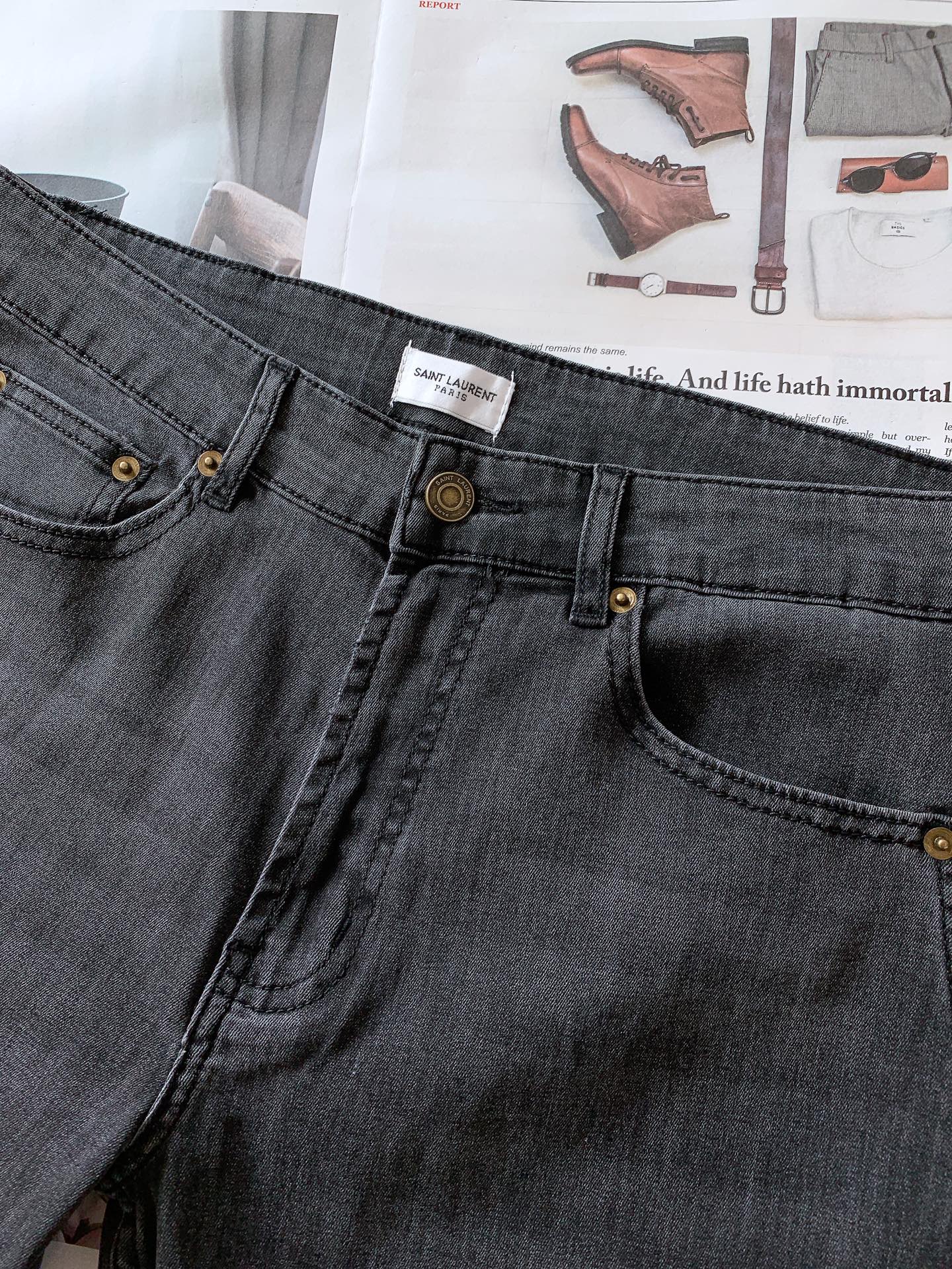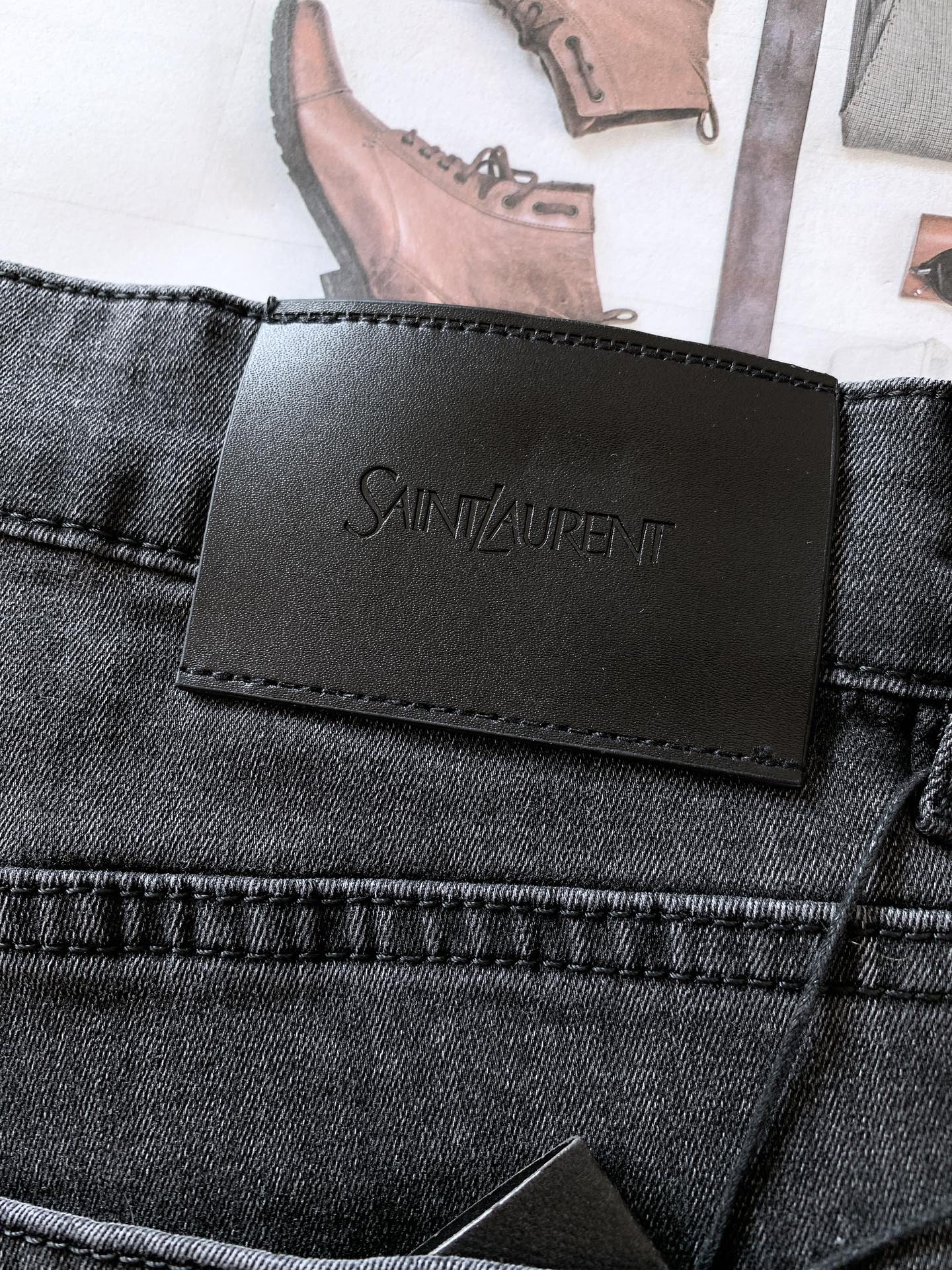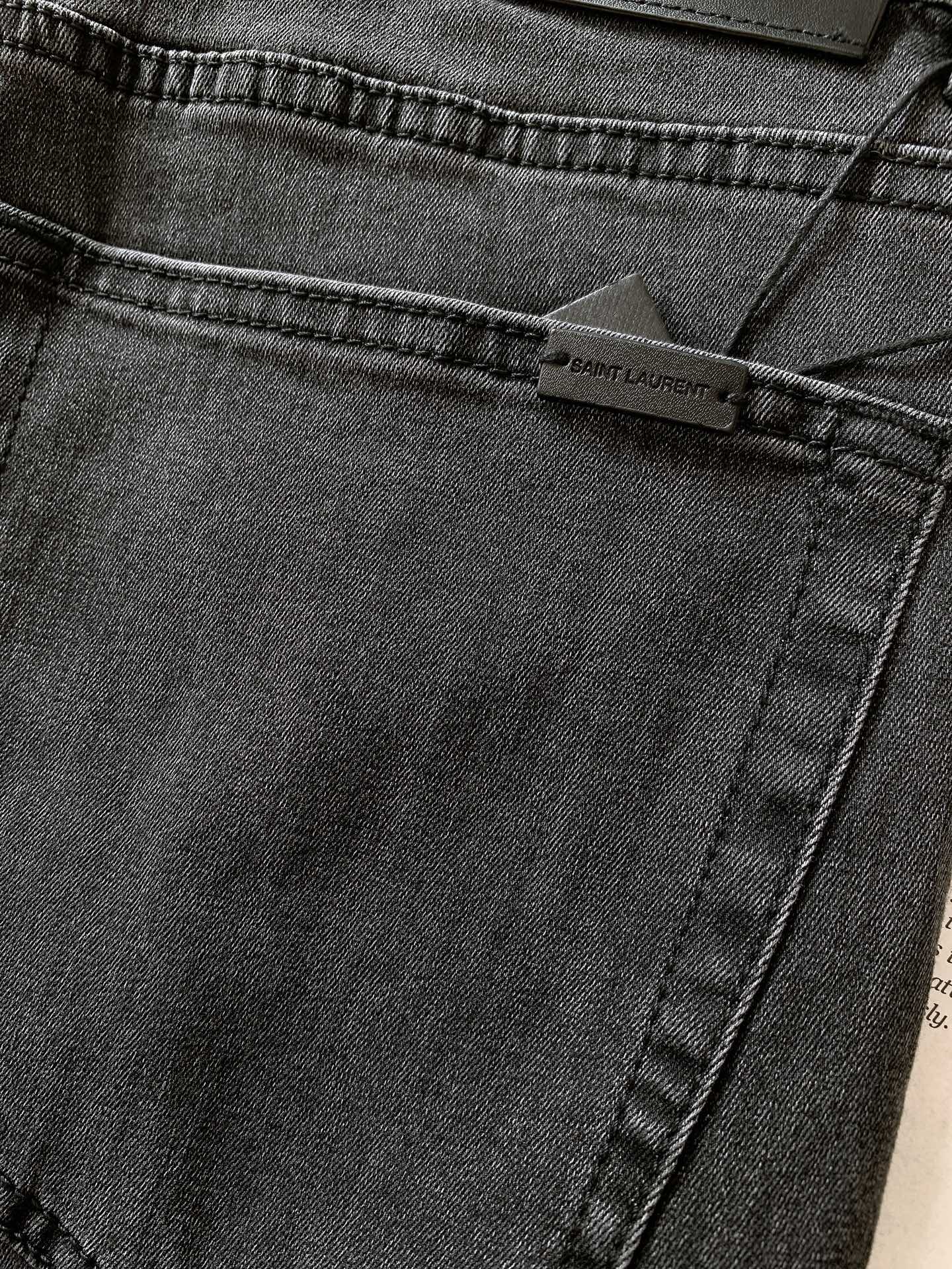 Saint Laurent 圣罗兰 2025SS春夏新品 高级时装感,休闲洗水牛仔裤。 面料很特殊,超细精仿棉纱混纺,超柔舒适感。 具备牛仔随性感 ,休闲感 , 亦有轻松感 ,时尚感。 布面清爽,微弹力,超柔穿着时间长, 整条裤子全传统手擦工艺,自然石磨轻酵洗水。 版型属于合体小直脚剪裁,细节精致感。 …………………………………………………… ❥∙Size:29-38
