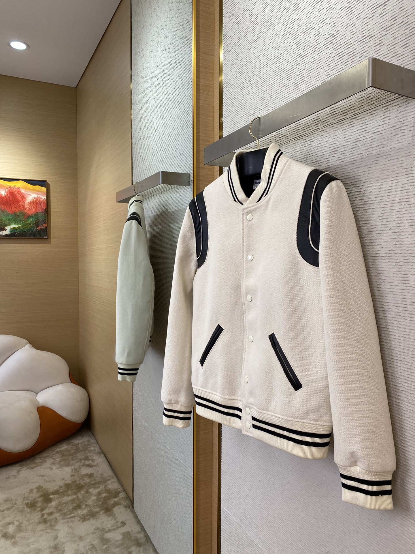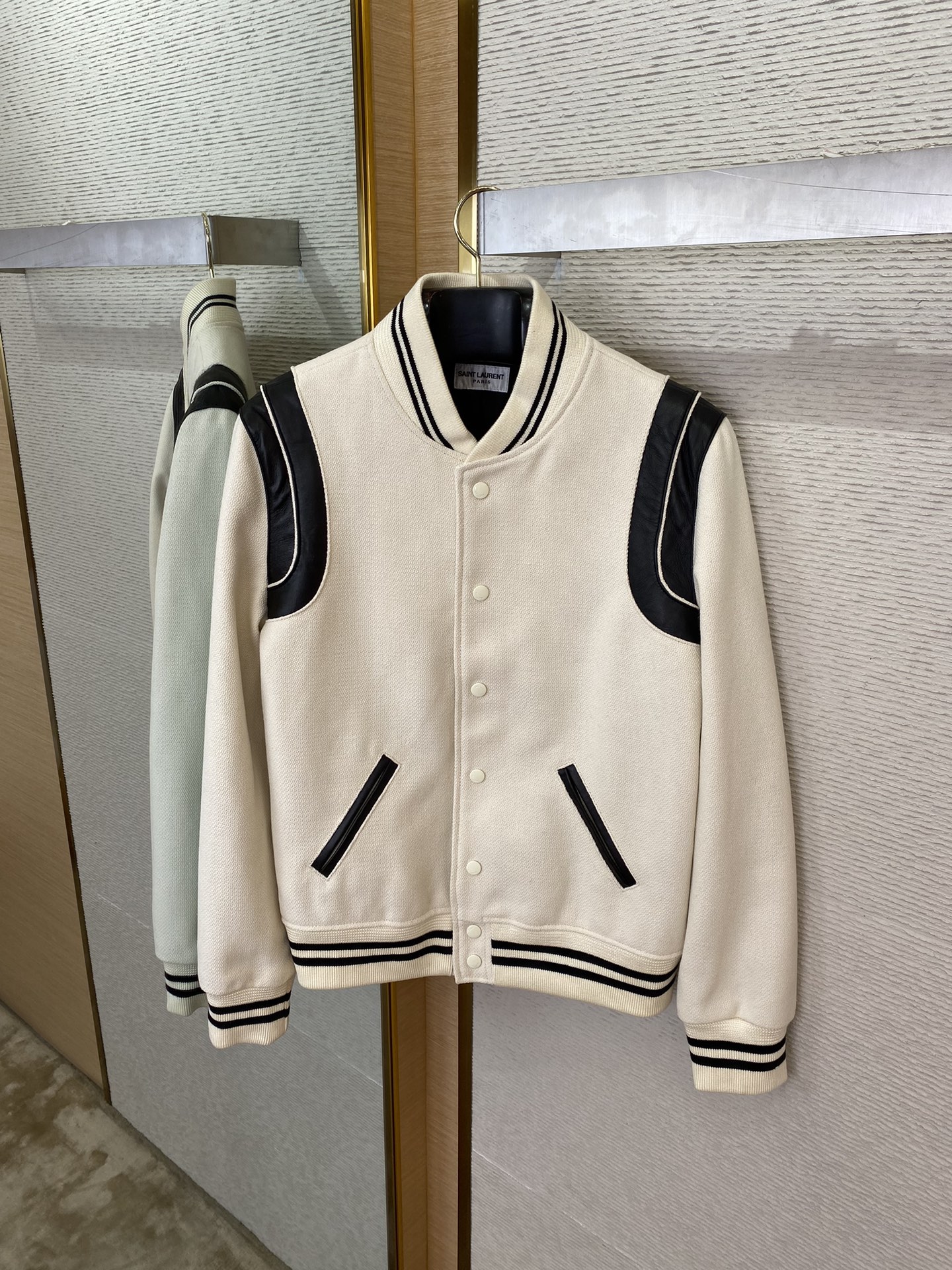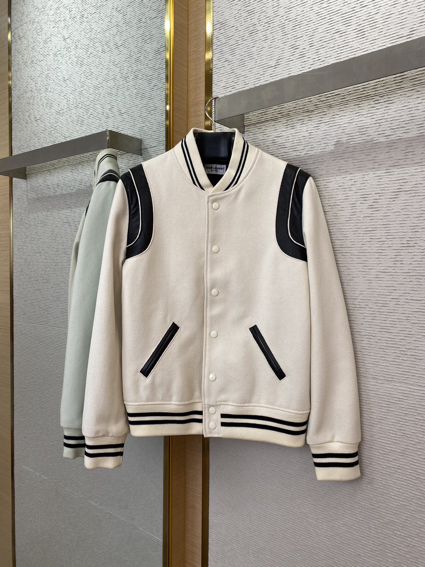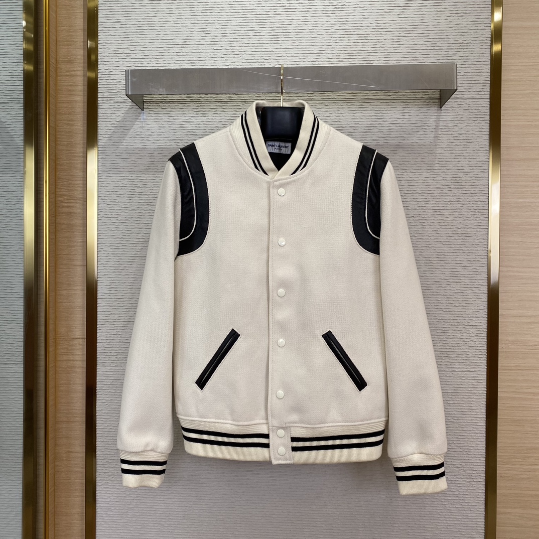 SLP圣罗兰棒球服 【编码8876088】 YB购入打版,采用定制羊毛混纺面料,真皮点缀,实测单件克重1kg以上 超厚实羊毛昵质感,高磅数双织法,织法密度高表面轻微浮毛,能与同季下装搭配营造时尚造型,驾驭各种场合,定制辅料,三标齐全,男女同款! ⚠️售后无忧-顶级服务、效率、品质! ⚠️正确价格请添加客服微信咨询 ⚠️ 56码可定制220斤可穿 ➖➖➖➖➖➖ ⚠️ 版型 宽松剪裁 ⚠️ 颜色 黑色/白色/红色/蓝色 ⚠️ 尺码 44/46/48/50/52/54