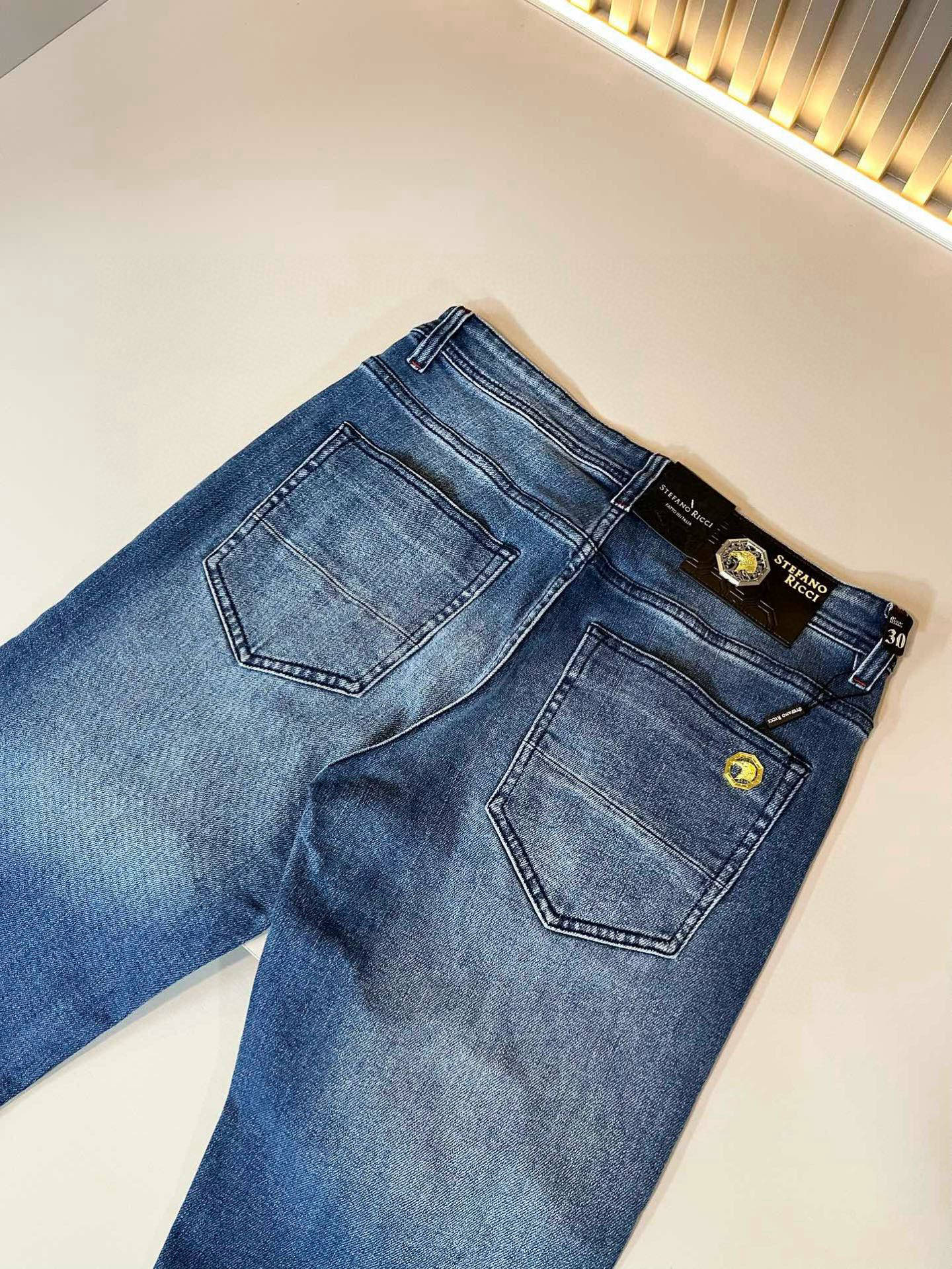 STEFANO RIC*I/史蒂芬.尼治 2025早春男士原单休闲牛仔裤,重磅推荐!品质“牛啤” 此款所运用原版专属面料!还是工艺都堪称顶尖,设计鹰头logo五金修饰!立体感极强,视觉极其惊艳震撼,图案由标志性的品牌图案呈现,辨识度非常鲜明且高级时髦,有力彰显身份!此外棉感十足,舒适性与透气性兼备,触感极为细腻,亲肤性绝佳!细节完美如斯,各种精湛考究 造型感极强,上身型款十足,属于市面独一无二的类型!尺码:29-40