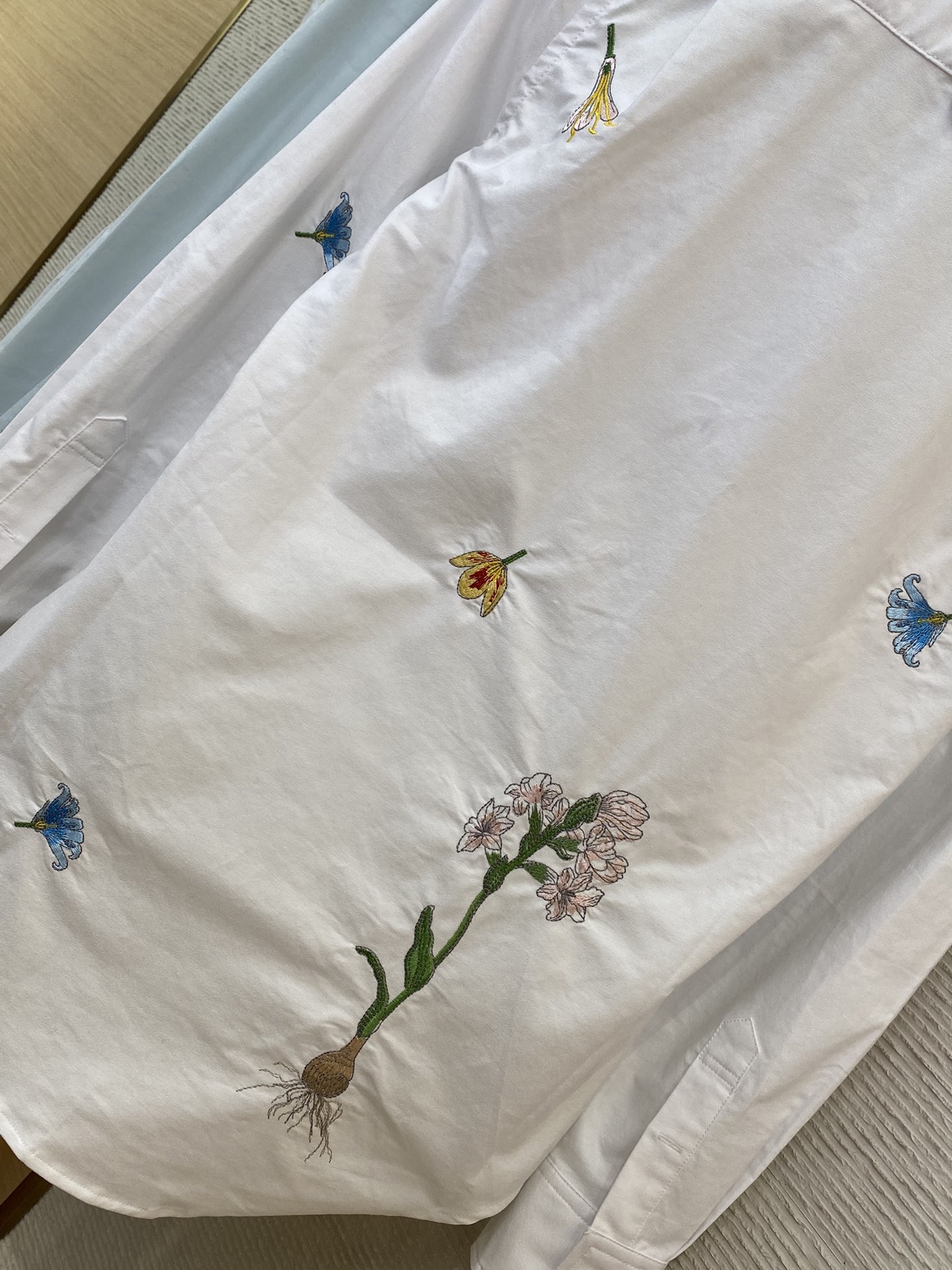 YB购入打版,采用定制棉质面料,面料的质地细腻柔软,亲肤性极佳,而且它的透气性特别好,即使在闷热的天气里穿着,也能保持清爽自在,穿在身上自然下垂,能很好地修饰身形,让整个人看起来更加挺拔有型,高级感满满,全幅花卉重工刺绣,万针刺绣花卉图案栩栩如生,仿佛一朵朵鲜花在衬衫上绽放,细节之处处理得非常精致,花瓣的纹理、花蕊的形态都清晰可见,简直就是一件艺术品,这种重工刺绣不仅让衬衫看起来更加华丽,还大大提升了它的品质和档次。和普通的刺绣完全不一样,这种万针刺绣的牢固度也非常高,不用担心穿几次或者洗几次就会出现脱线、掉色的情况,能够长久保持精致的模样,搭配牛仔裤、短裙打造休闲时尚风,都能轻松驾驭,展现出不一样的风格,定制辅料,三标齐全,男女同款!