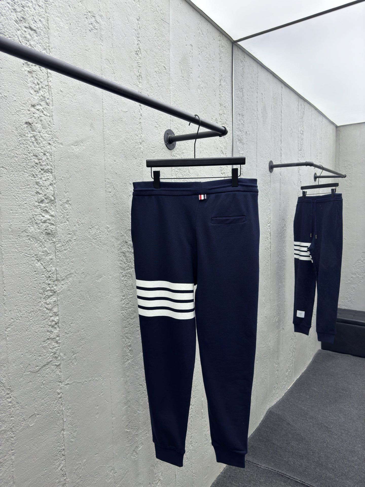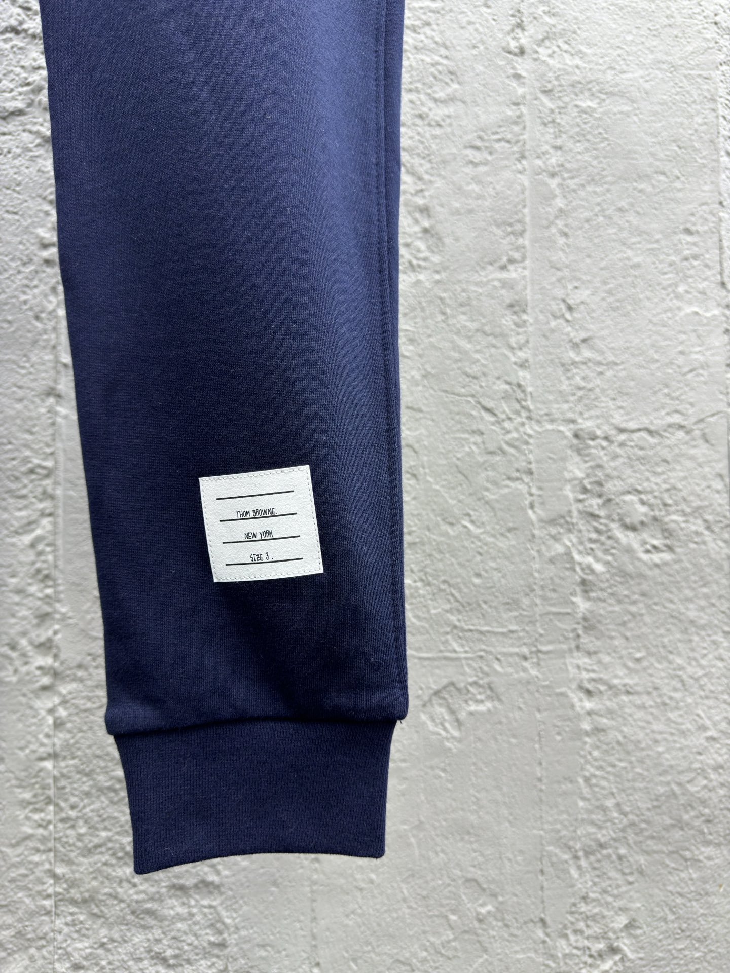 THOM BRKWNE 华夫格水波纹长裤 工艺说明:定织纺染采用420克(洗后455克)全棉华夫格材质 手臂4bar循环面料纯手工拼接 定制红白蓝织带2.5cm 定制150克单面平纹帽里布袋布 定织全棉螺纹包含(帽口 袖口 下巴 袋唇 拉链贴螺纹) 定制开模单头开合拉链riri-m6 定制四方尺码标 ⚠️颜色:藏青色 ⚠️Size:0/1/2/3/4/5