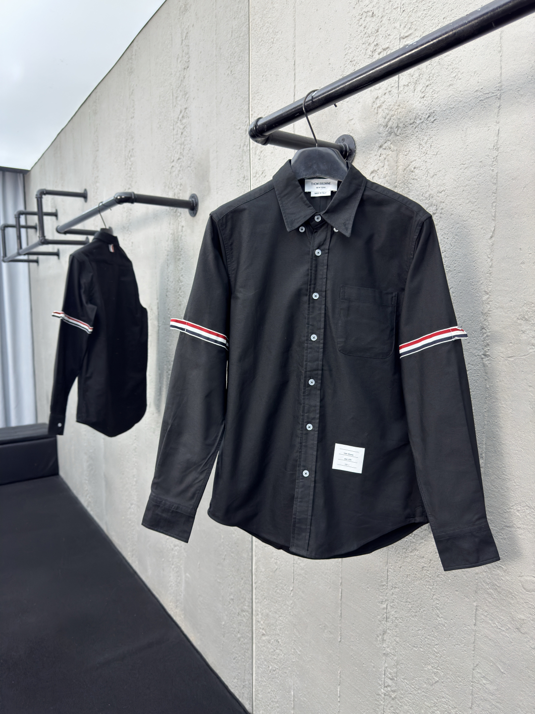 THOM BRKWNE 双袖标志衬衫 工艺说明:采用进口设备缝制 针距细密 高清还原细节,整体走线平直细腻,面料舒适柔软,颜色一致无色差 能与同款搭配营造时尚造型,驾驭各种场合,定制辅料,三标齐全,男女同款! ⚠️颜色:黑色 ⚠️Size:0/1/2/3/4