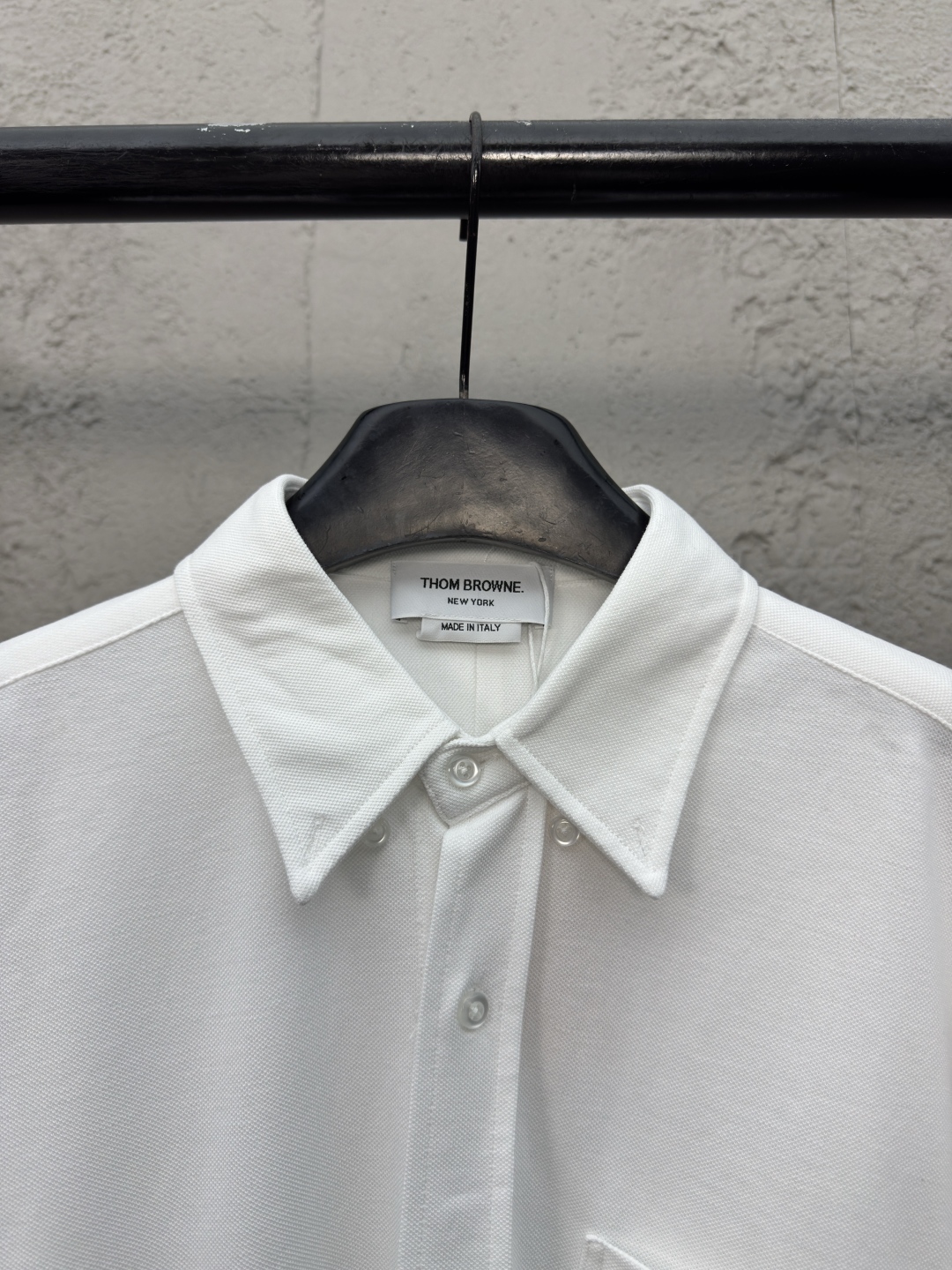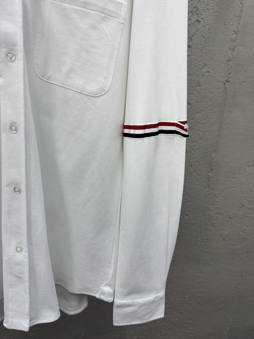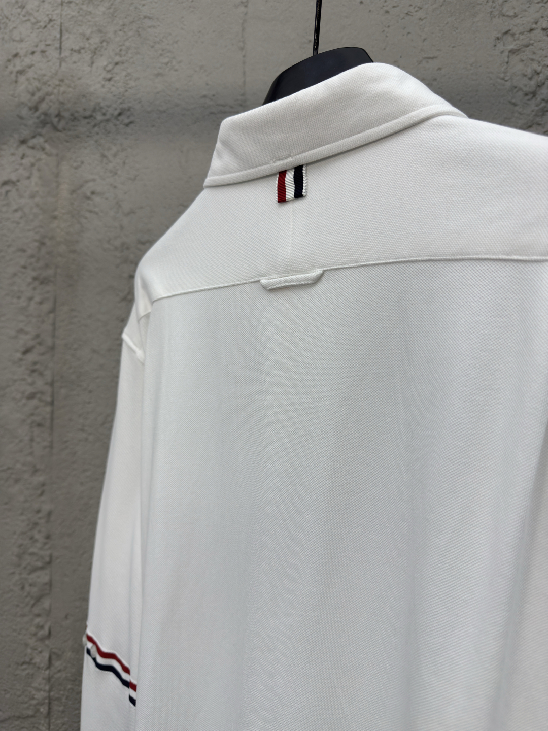 THOM BRKWNE 棉质双袖标志衬衫 工艺说明:采用进口设备缝制 针距细密 高清还原细节,整体走线平直细腻,面料舒适柔软,颜色一致无色差 能与同款搭配营造时尚造型,驾驭各种场合,定制辅料,三标齐全,男女同款! ⚠️颜色:白色 ⚠️Size:0/1/2/3/4