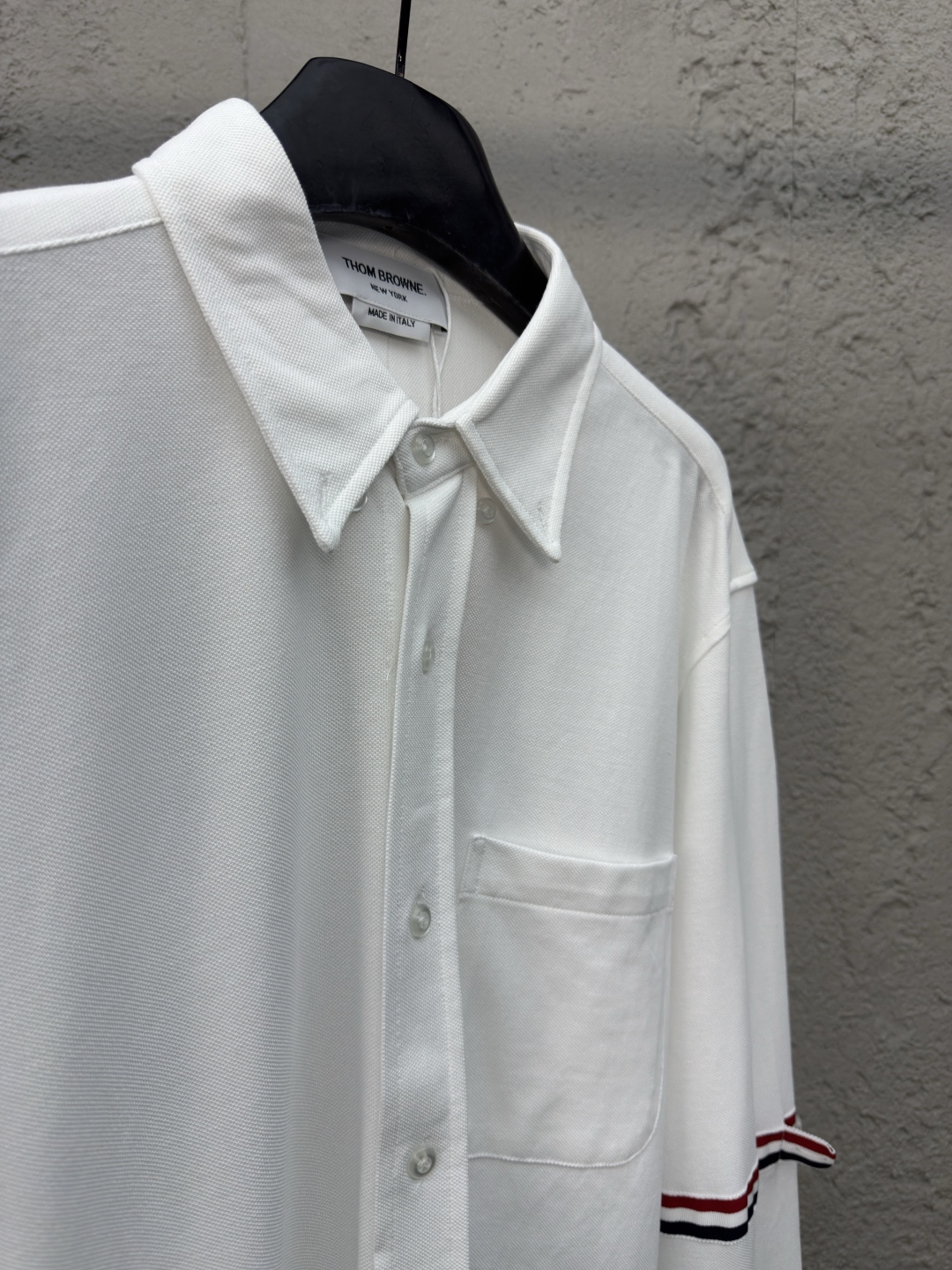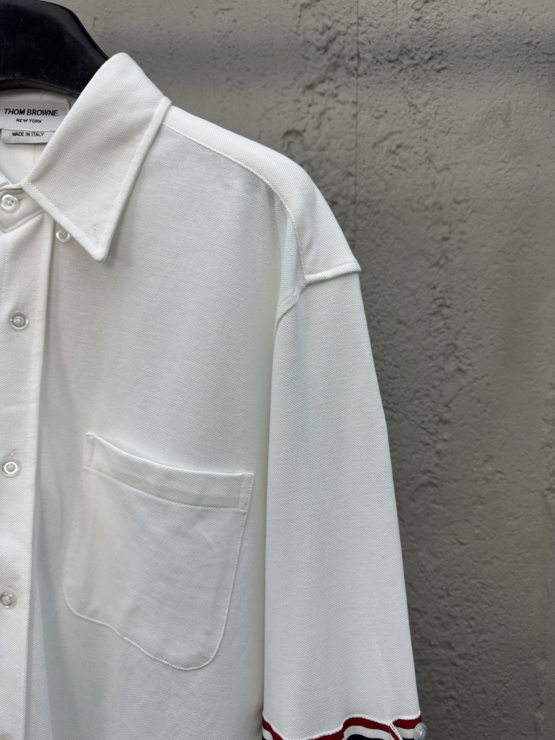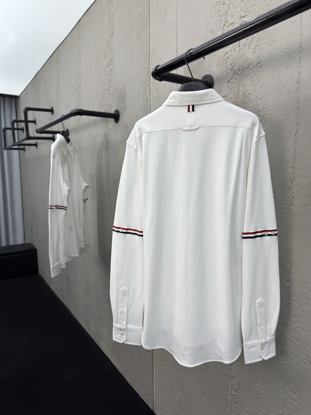 THOM BRKWNE 棉质双袖标志衬衫 工艺说明:采用进口设备缝制 针距细密 高清还原细节,整体走线平直细腻,面料舒适柔软,颜色一致无色差 能与同款搭配营造时尚造型,驾驭各种场合,定制辅料,三标齐全,男女同款! ⚠️颜色:白色 ⚠️Size:0/1/2/3/4
