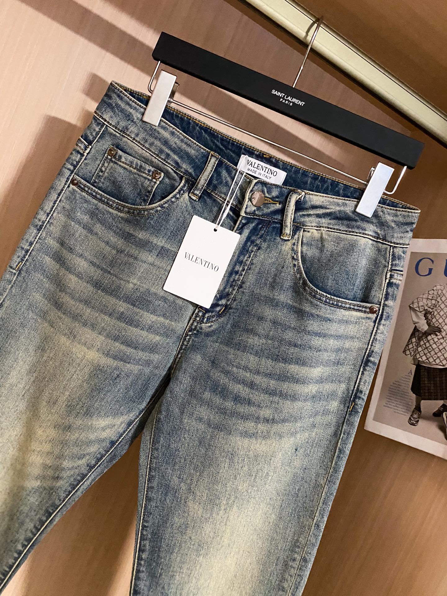VLTN 华伦天奴 男士浅色调牛仔裤,Slim Fit系列,经典小直筒的版型,浅色调的牛仔会是一道靓丽的风景线,重磅丹宁,赤耳品相,中度水洗,简单干净!华伦的铆钉,低调有品 尺码:28-38( ️37)